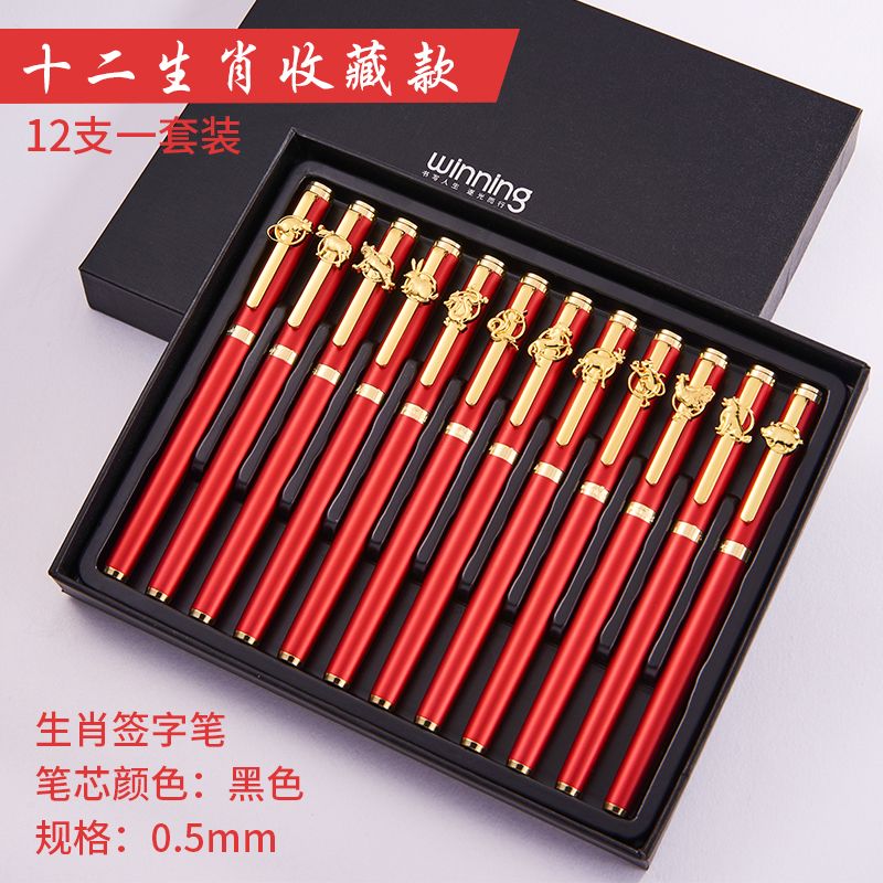 十二生肖签字笔本命年礼物创意高档走珠笔同学生日礼品黑色中性笔水笔金属笔杆重手感送礼学生用签单专属刻字