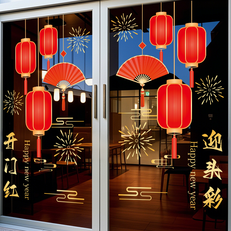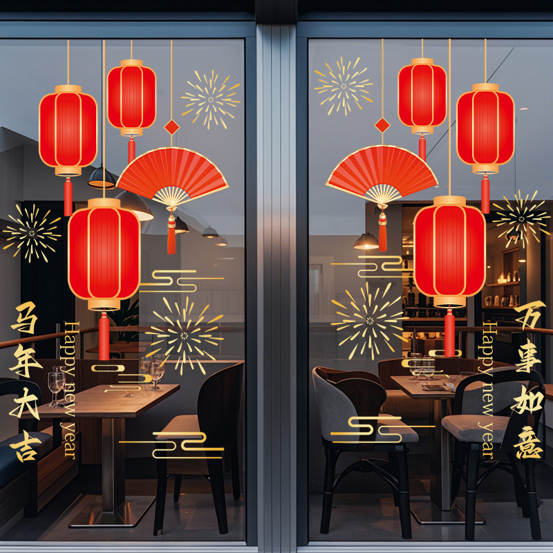 2026年马年新年装饰静电贴玻璃门贴纸过年元旦氛围布置春节开门红