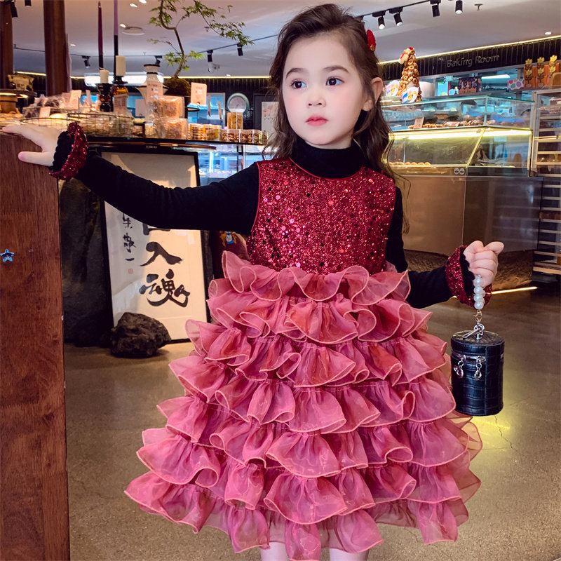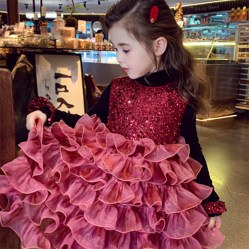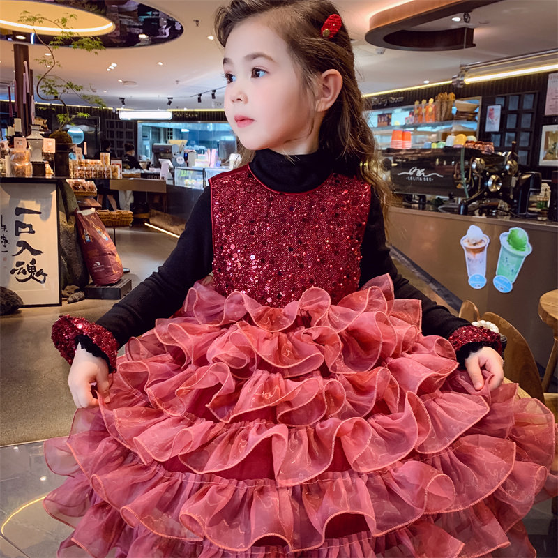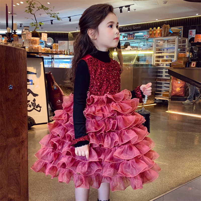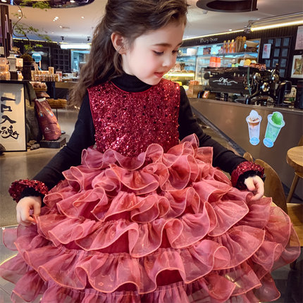 米米哈罗女童公主裙冬装2025新款女孩背心裙儿童小香风网纱连衣裙