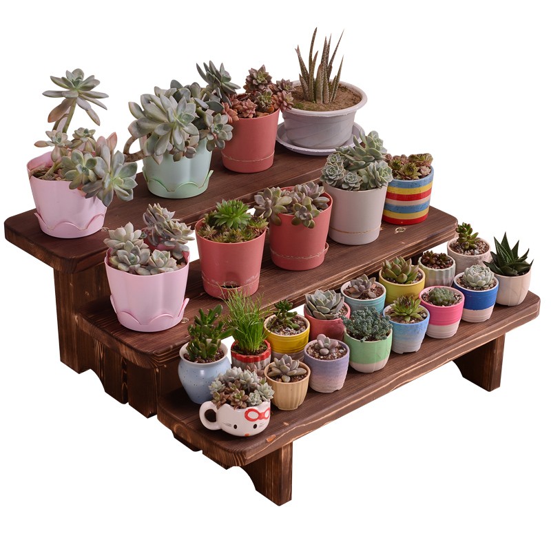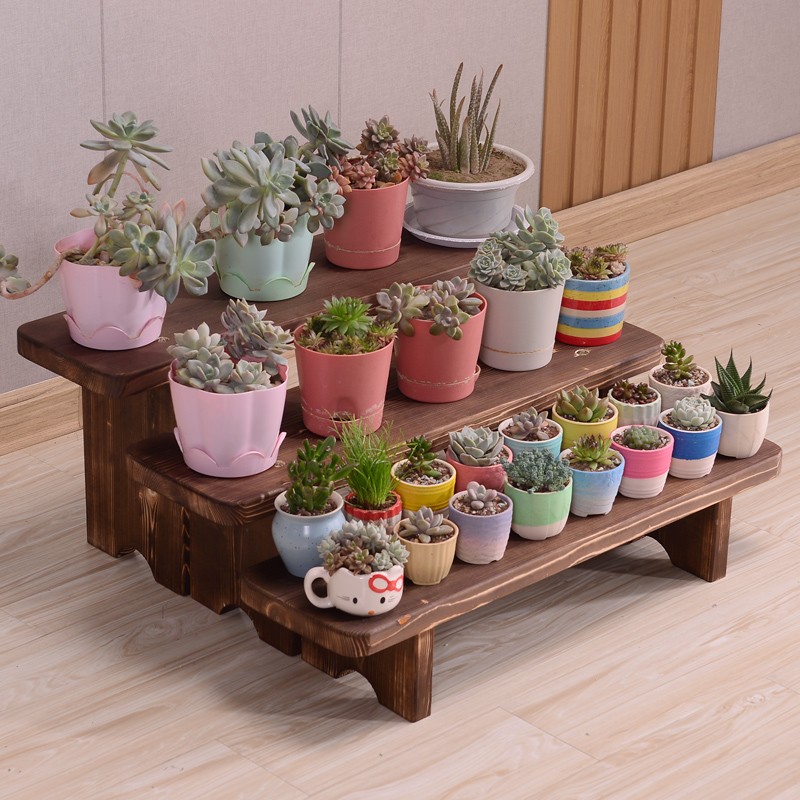 碳化实木多层阶梯花架阳台庭院木制台阶踏步凳子户外花几肉肉架子
