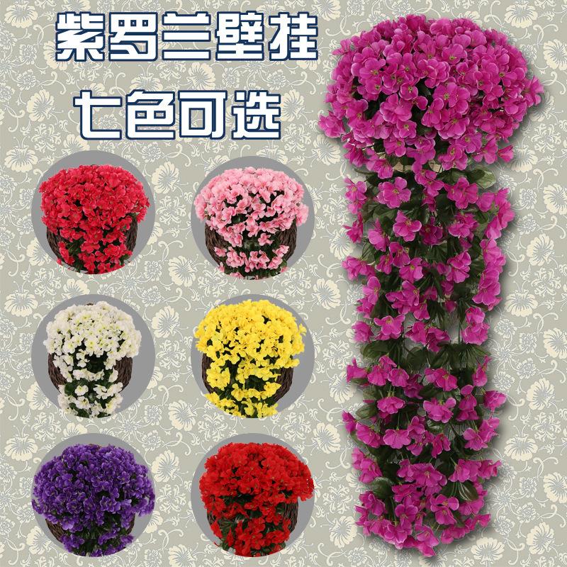 婚庆紫兰壁真挂仿真花藤条家居摆物件 假花罗装饰仿植紫罗兰壁绣