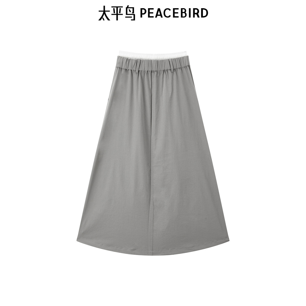 太平鸟2025夏季新款高腰拼色工装长裙半身裙女A3GFE3815