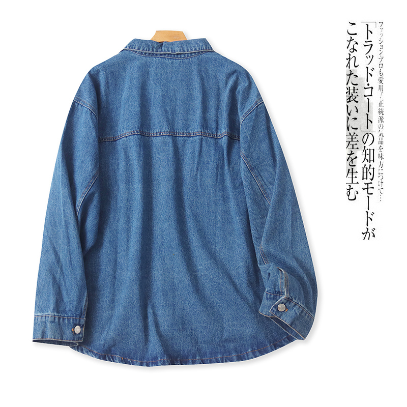 牛仔外套衬衫款 秋季新款外贸女装破洞翻领单排扣长袖大版型29785