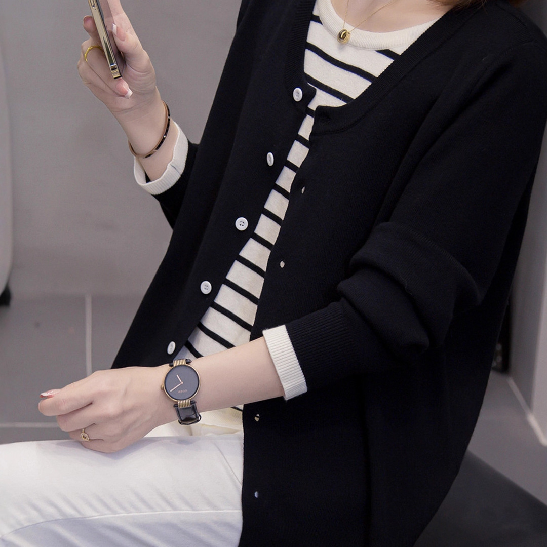 大码女装胖mm秋新款2025假两件时尚拼接条纹外套宽松毛衣针织衫