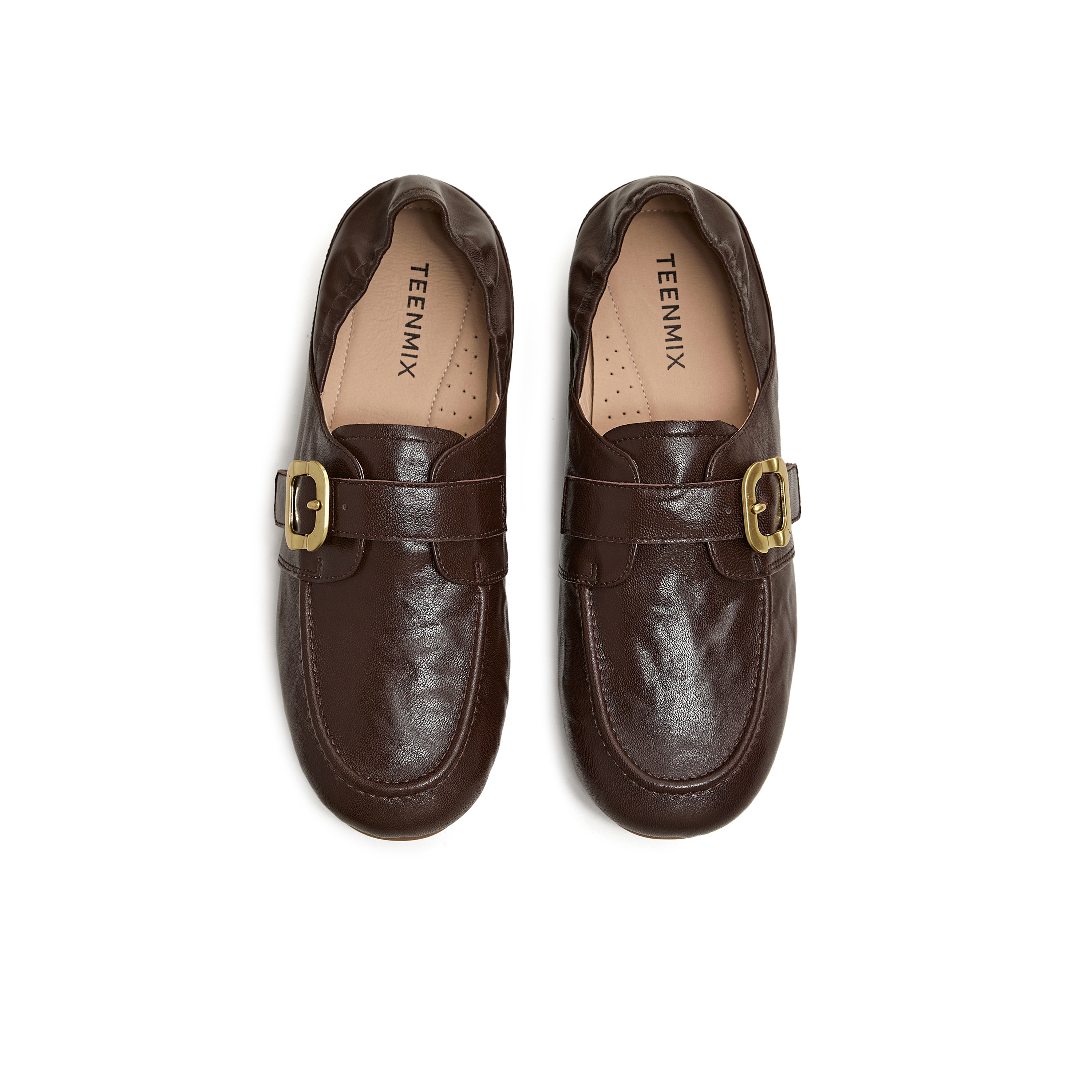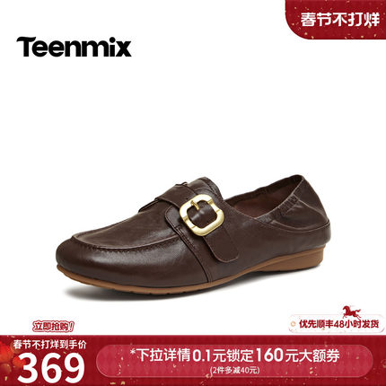 天美意复古英伦乐福鞋平底鞋单鞋女两穿小皮鞋2026春新款KE084AA6
