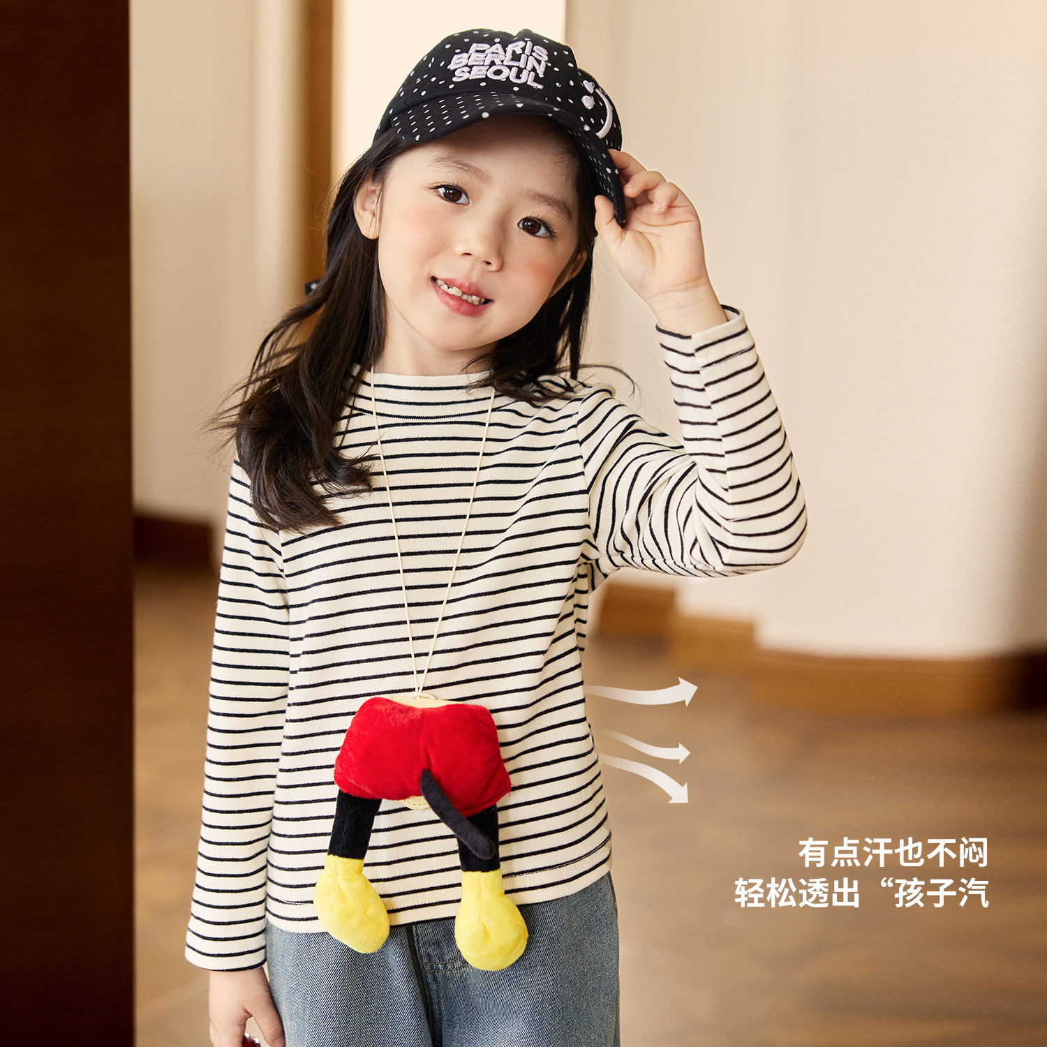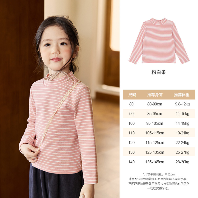 小O宝Okids童装 宝宝条纹长袖t恤女半高领2025冬季新款女童打底衫