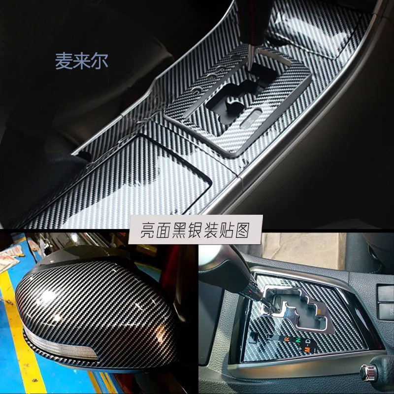 汽车碳纤维黑色贴膜内饰中控贴纸亮面立柱机盖车标车身车顶改色膜
