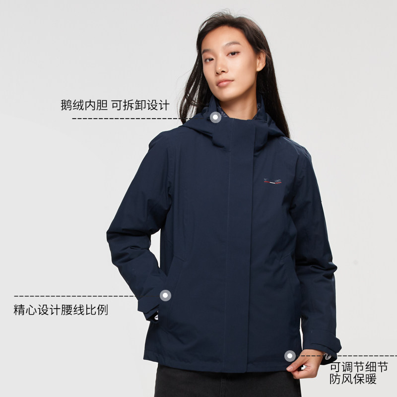 诺诗兰冲锋衣女外套冬羽绒三合一保暖鹅绒户外防水防风连帽外套