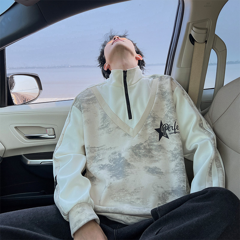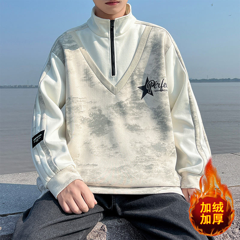 假两件半拉链卫衣男款春秋款潮牌宽松青少年初中高中学生长袖t恤