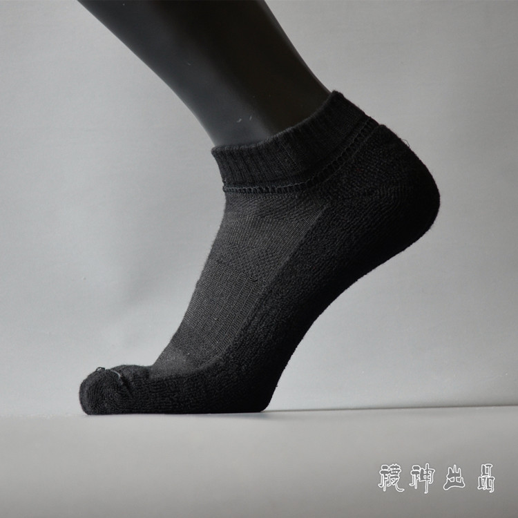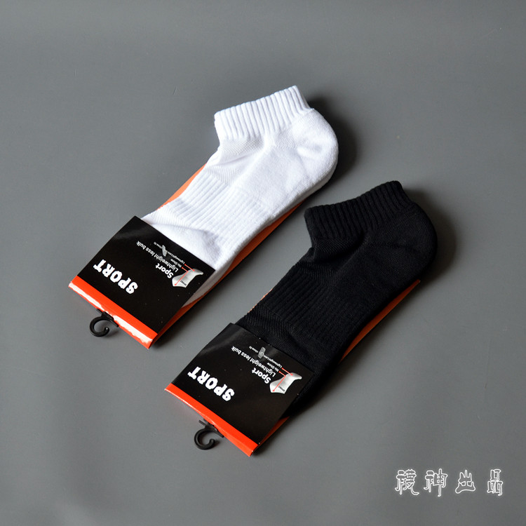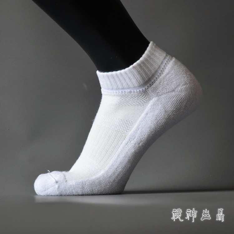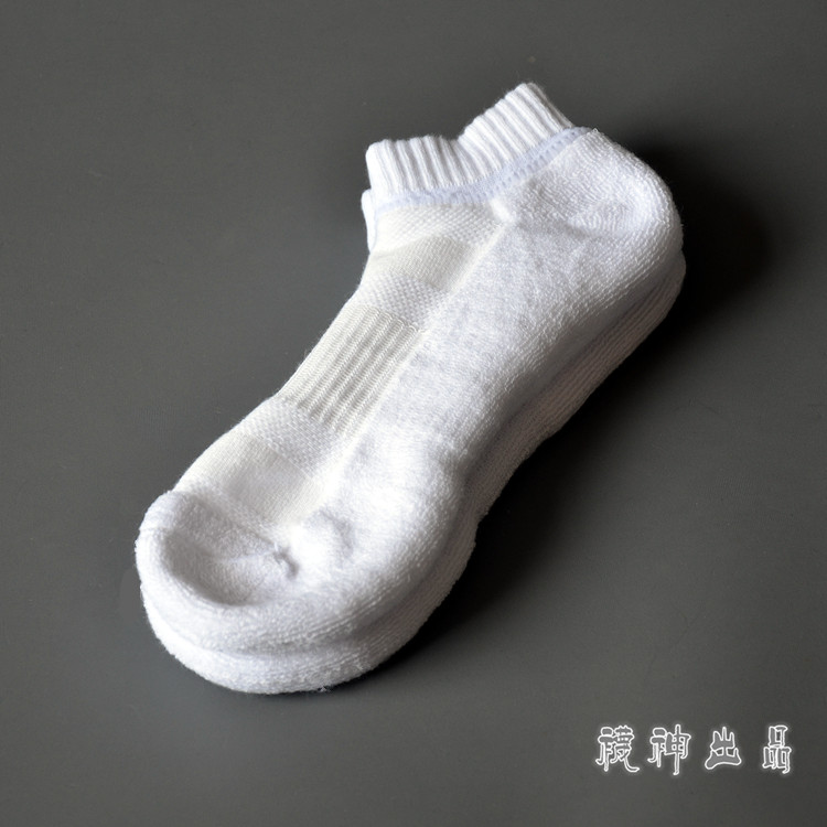 袜神出品纯棉男士运动加厚毛巾底船袜纯黑白色毛圈跑步篮球短袜子