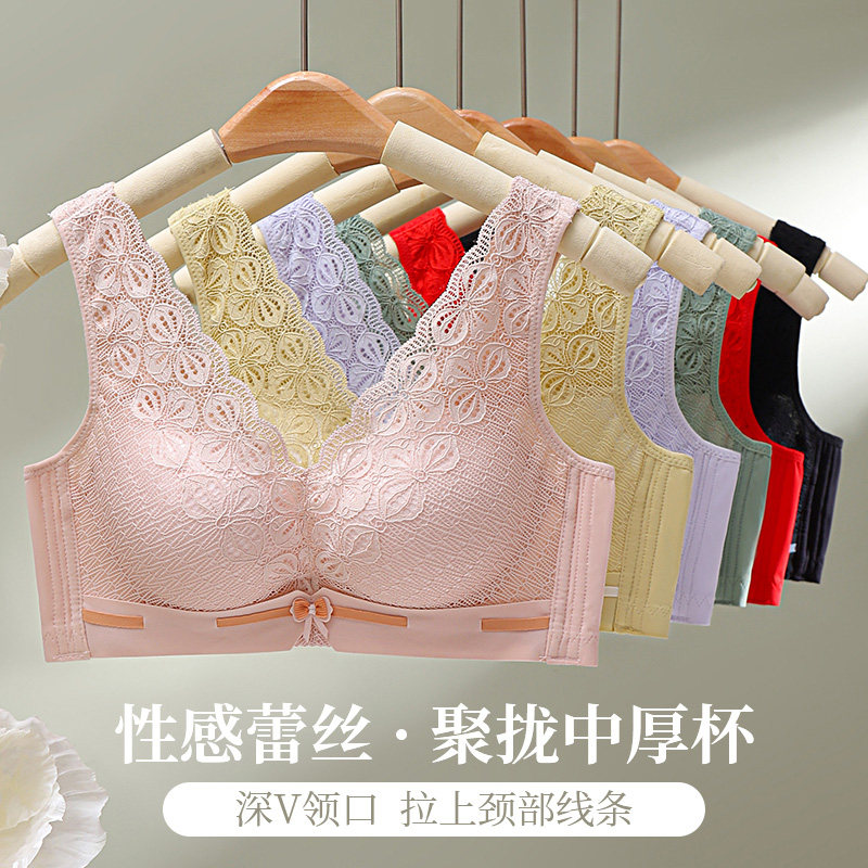 背心款式文胸内衣女无钢圈小胸聚拢上托调整型收副乳性感蕾丝胸罩