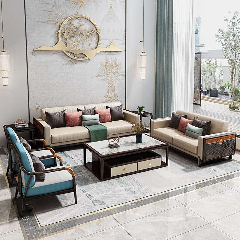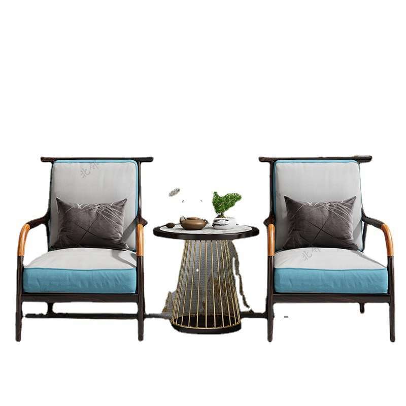 新中式实木椅现代客厅阳台休闲单人靠背椅乌金木沙发组合家具沙发