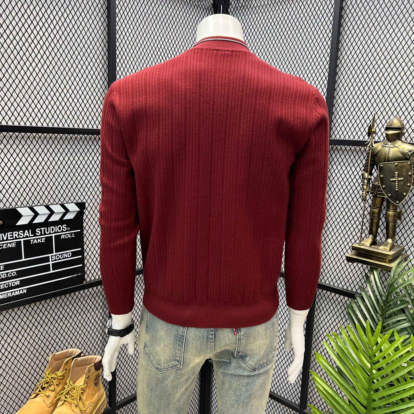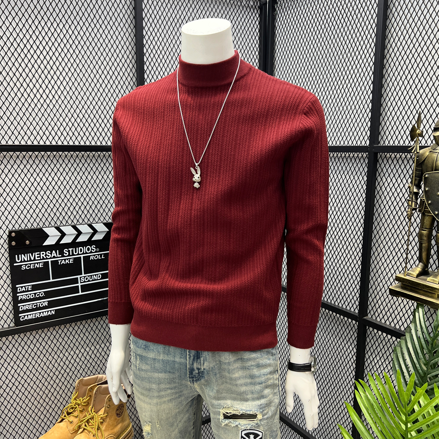 日系简约半高领打底中领坑条针织衫毛衣男士秋冬季修身上衣基础款