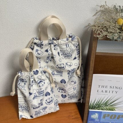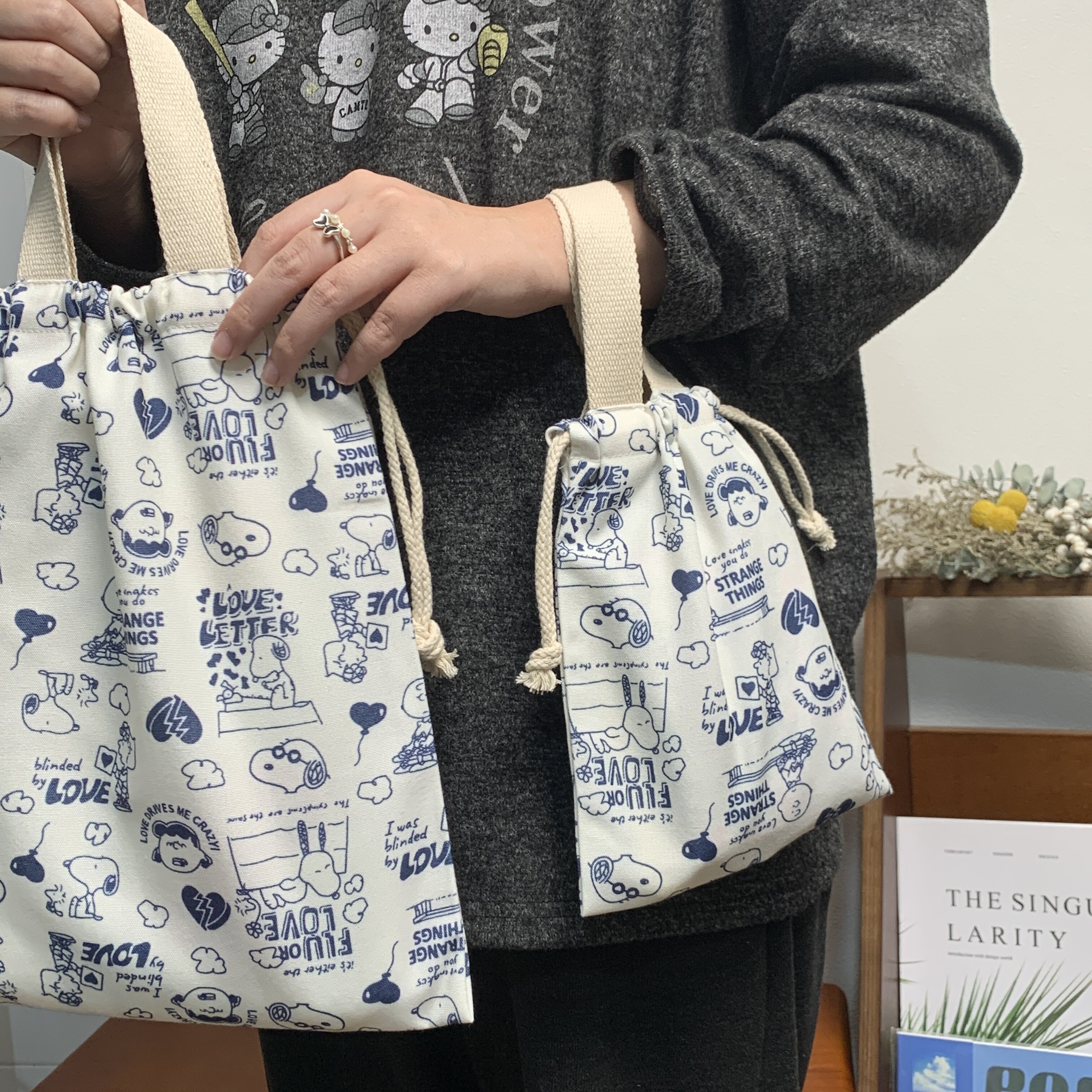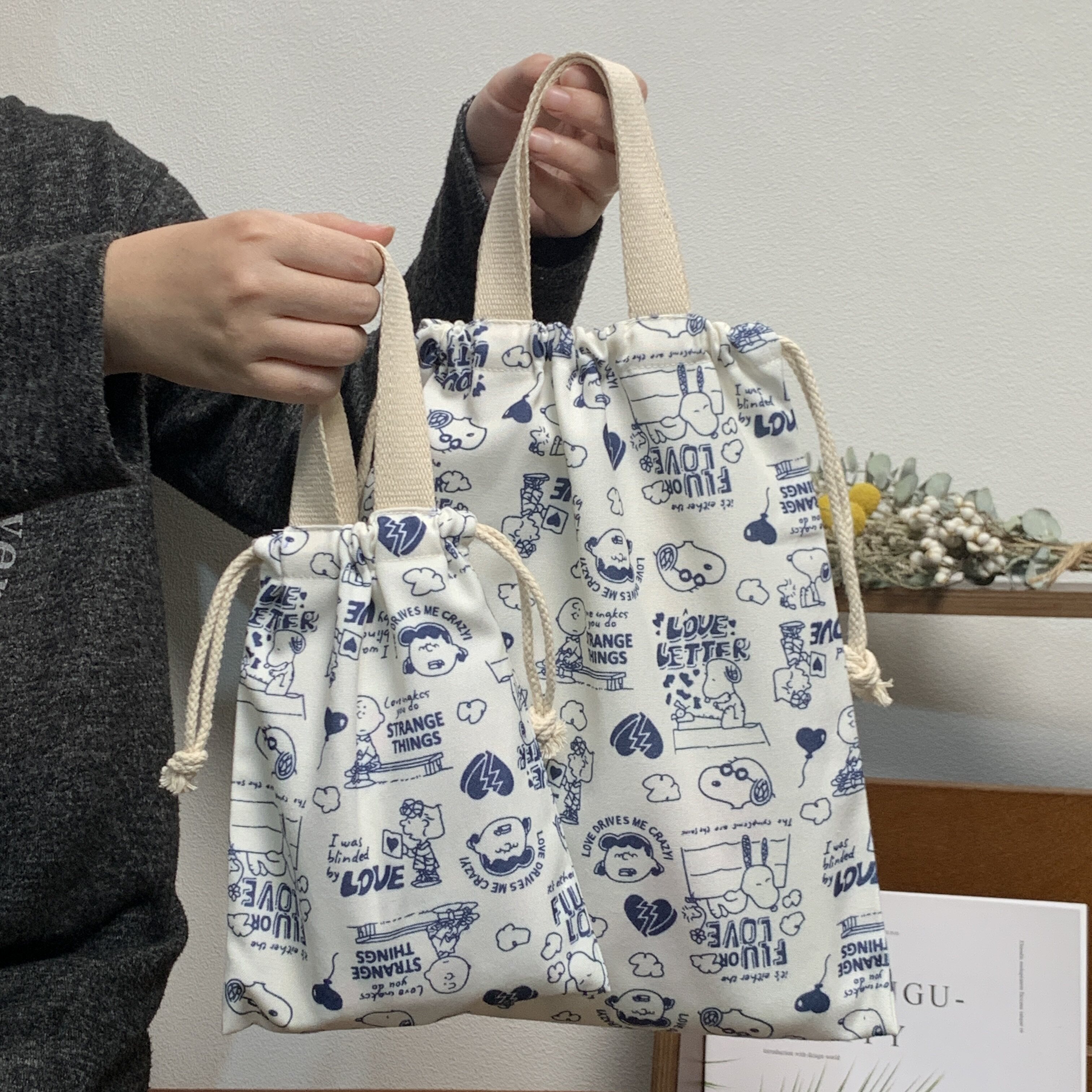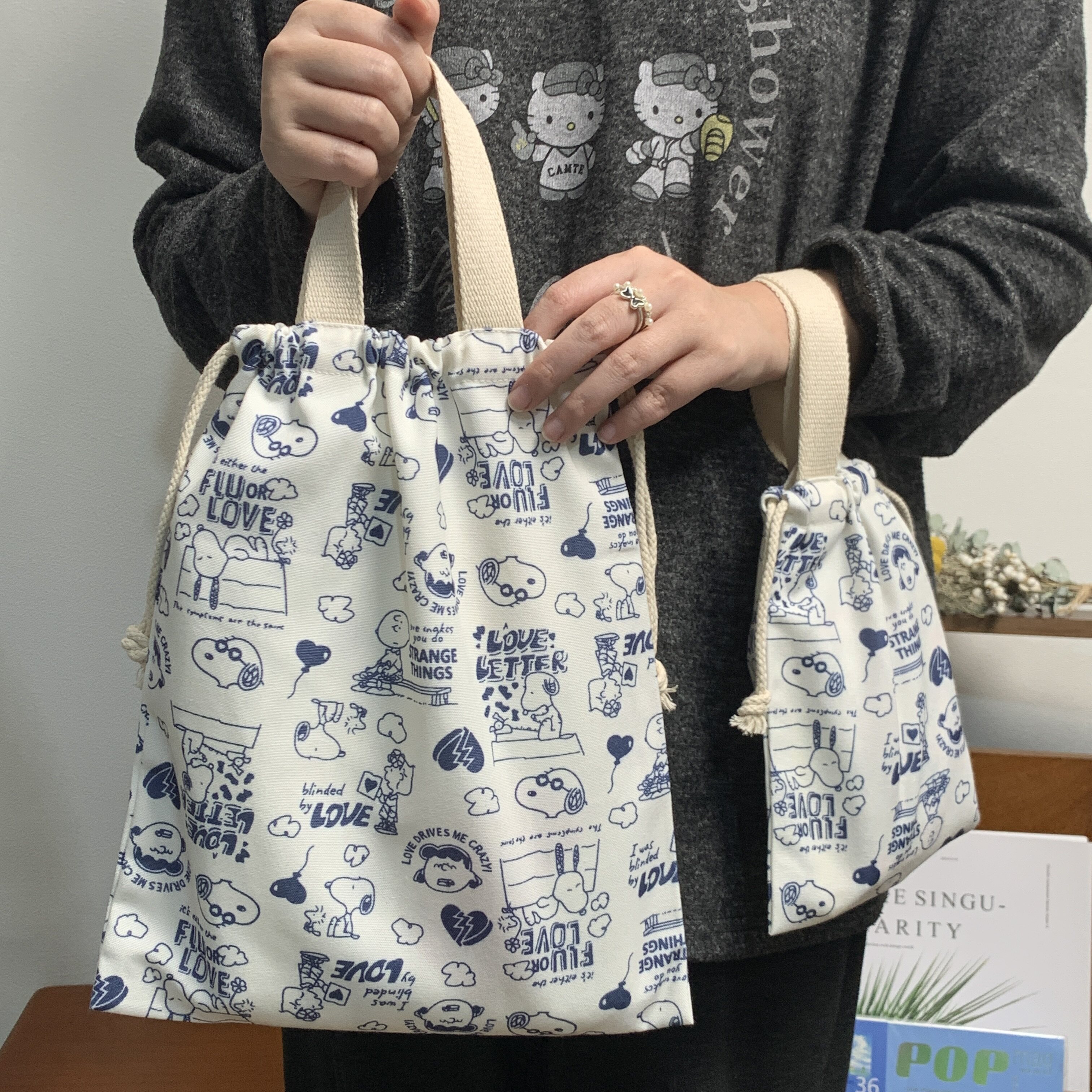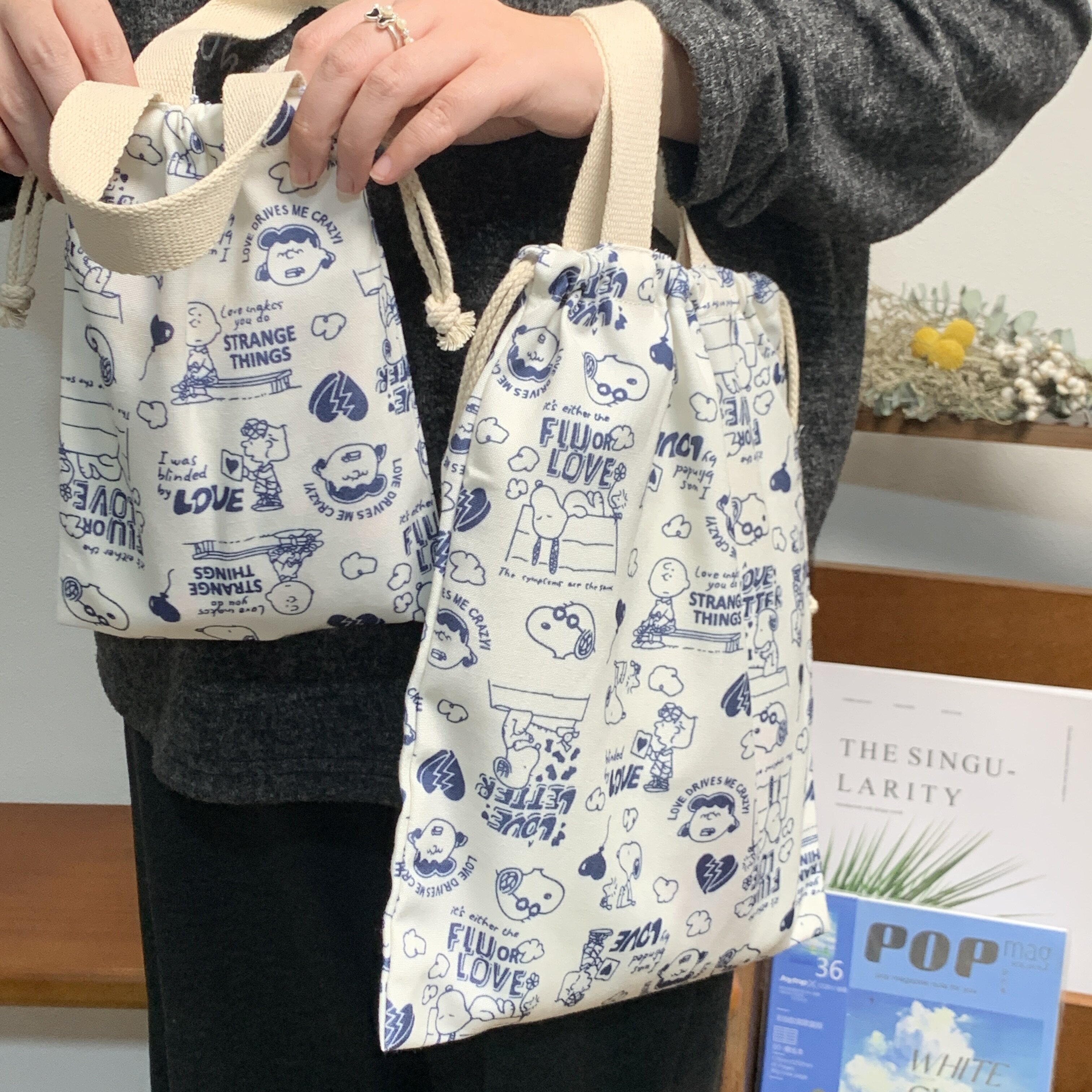 新款史努比印花抽绳束口袋帆布包女大容量化妆收纳手提杂物整理袋