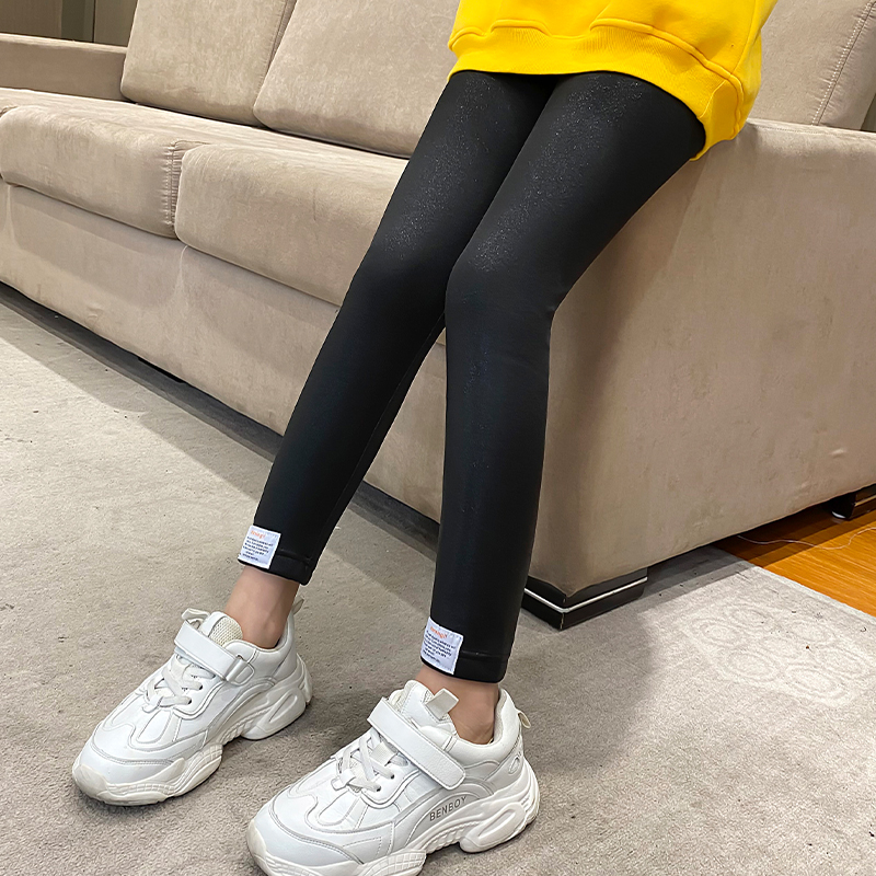 女童打底裤冬季加绒加厚洋气外穿儿童皮裤防风防水保暖裤女孩裤子