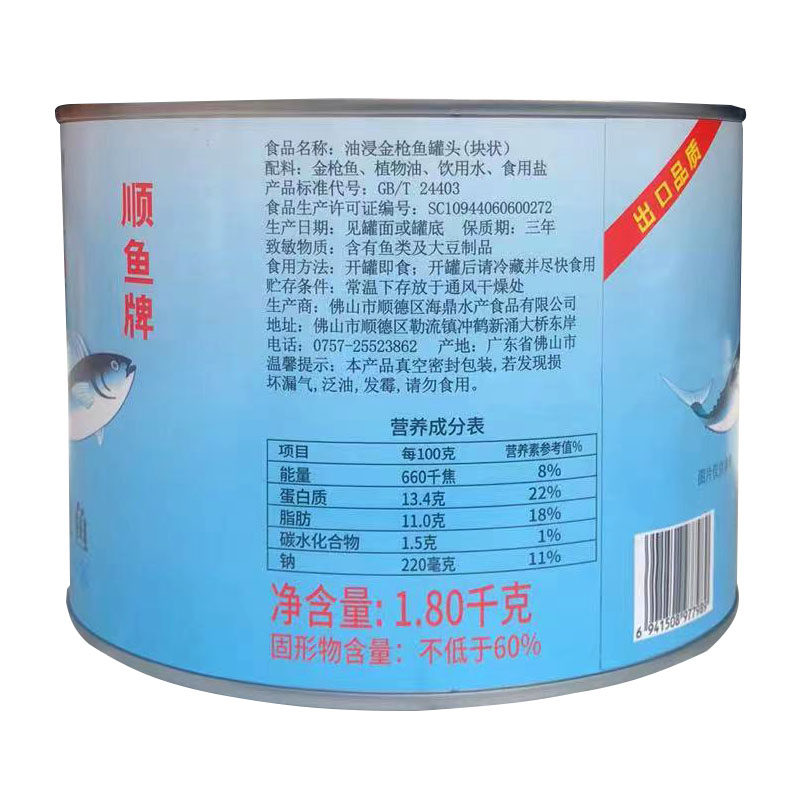 包邮油浸金枪鱼罐头1.8kg*6罐整件即食油浸吞拿鱼轻食鱼肉熟食