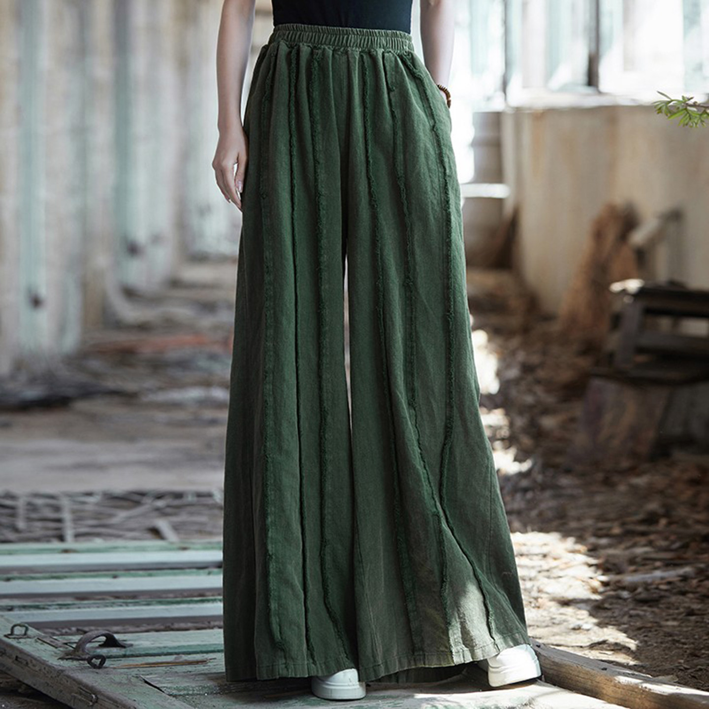 棉麻休闲裤女宽松百搭做旧磨毛长裤居家旅行禅修阔腿16片拼接裙裤