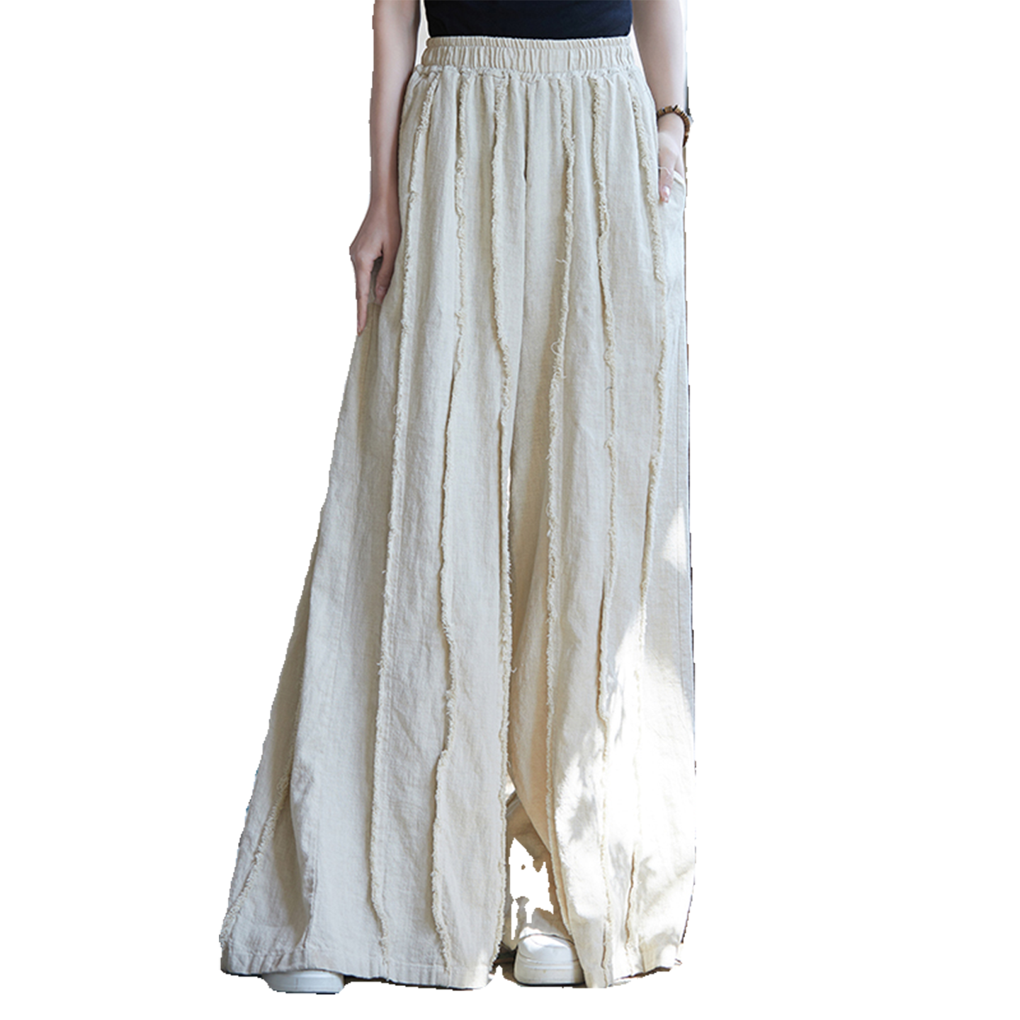 棉麻拼接阔腿裤做旧磨毛裙裤