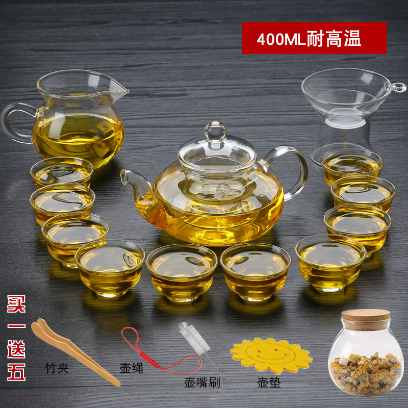 耐热玻璃茶具套装功夫茶泡茶壶透明过滤红茶泡茶器茶碗公杯子家用