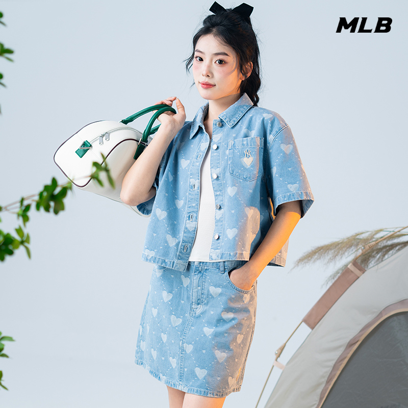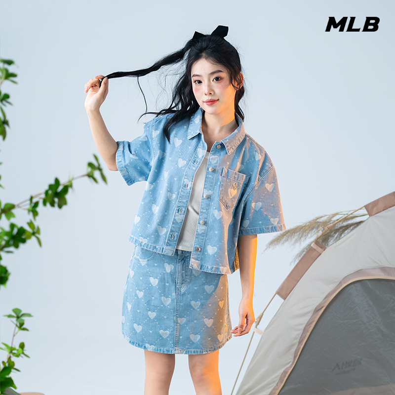 MLB官方 短袖衬衫女装薄款潮流爱心宽松休闲衬衣运动服3FDRH0243
