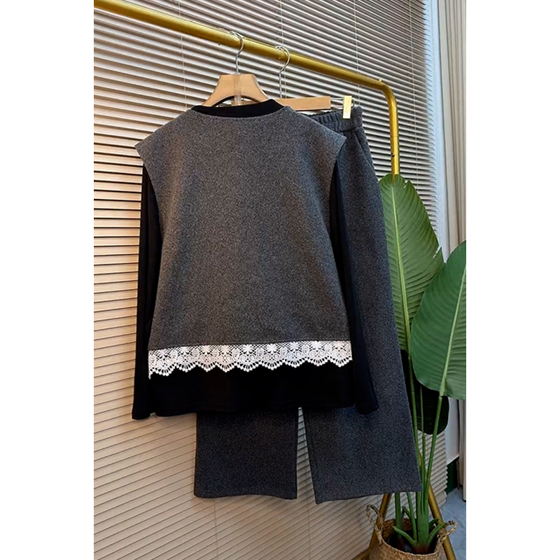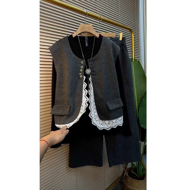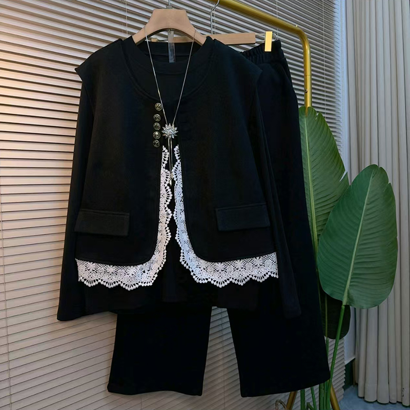 胖妹妹欧洲站秋冬季加厚三件套时尚显瘦大码女装穿搭高级感套装潮