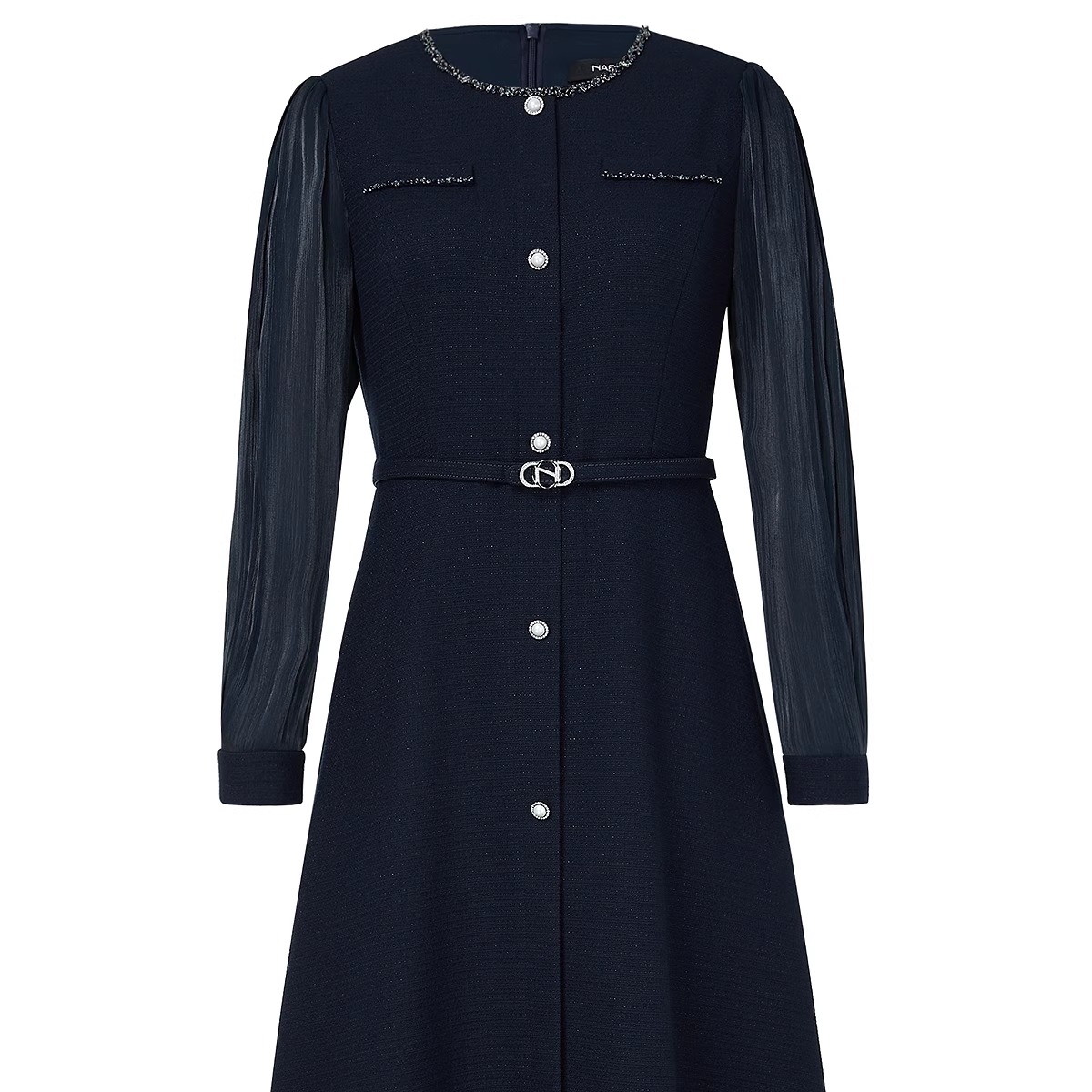娜家商场同款圆领修身显瘦连衣裙秋(配腰带)新款小香风长袖连衣裙