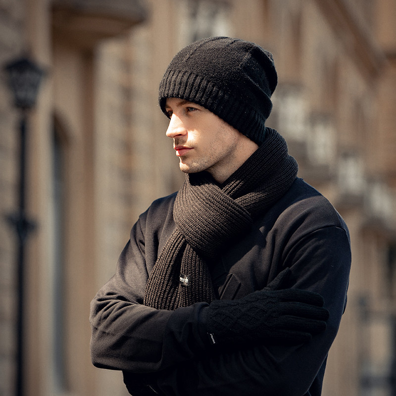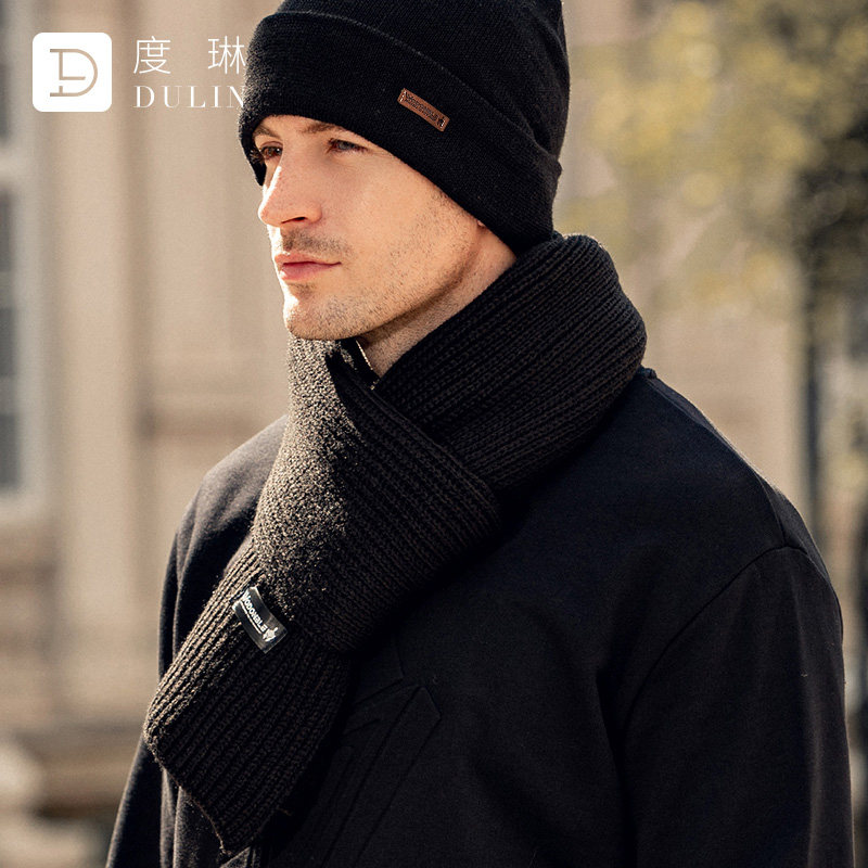 中年新款羊毛围巾男冬季毛线针织百搭潮高档生日礼物保暖男士围脖