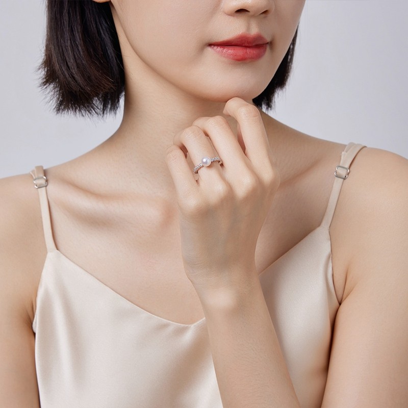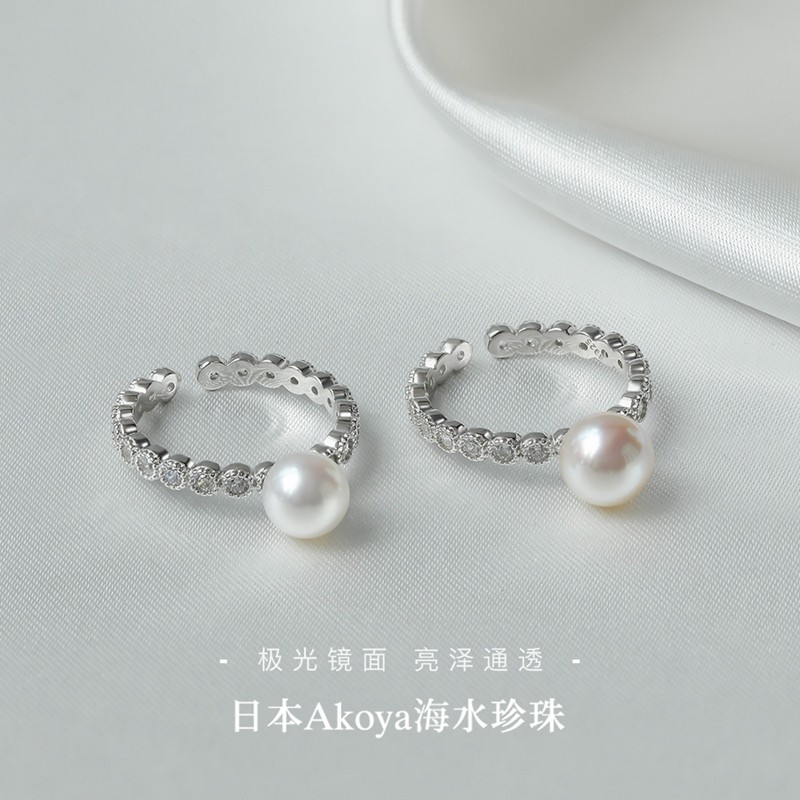 akoya海水珍珠戒指S925银女戒