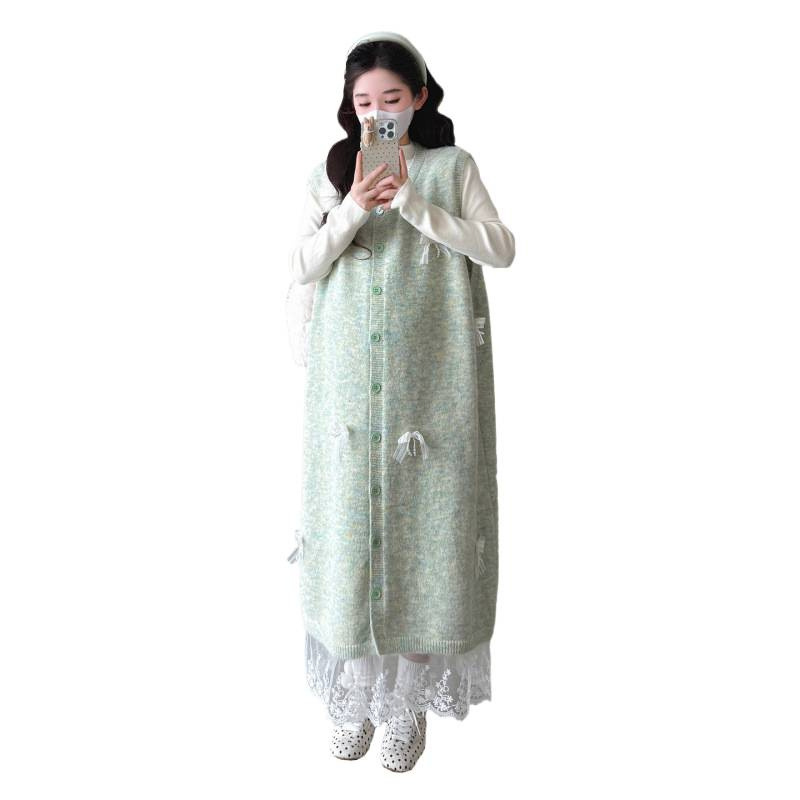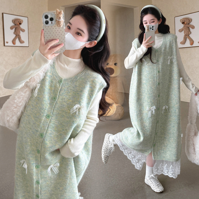 孕妇装秋冬套装新品减龄半高领上衣+韩版拼接蕾丝马甲裙两件套女