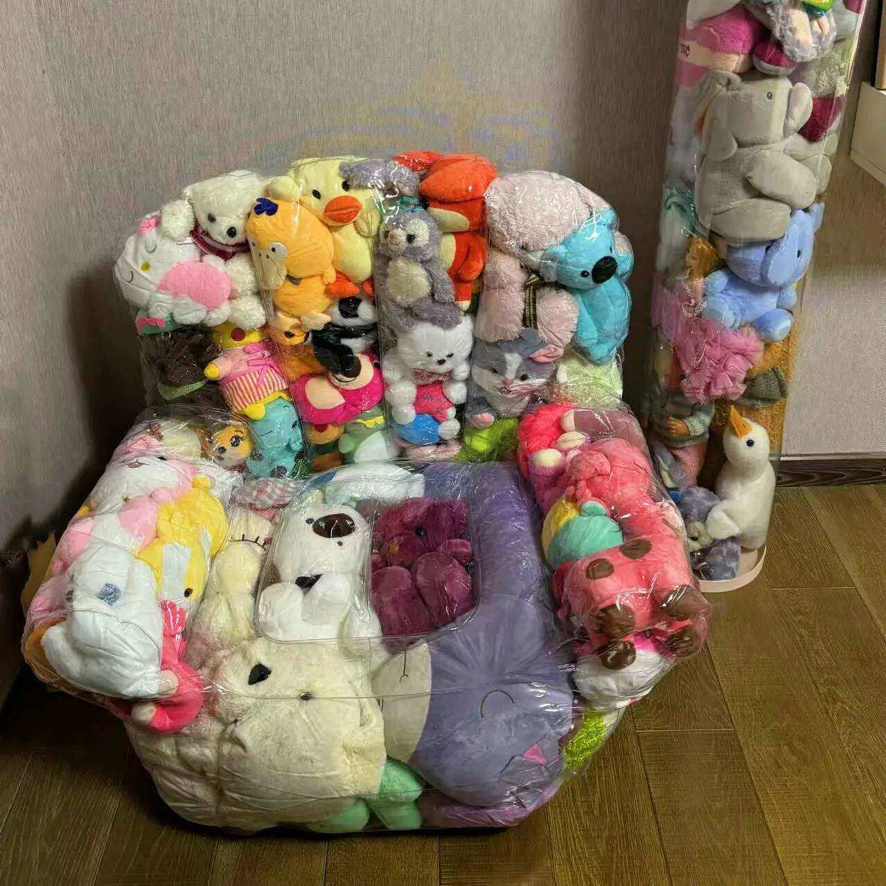 收纳玩偶沙发摆件实体透明毛绒娃娃玩具懒人棉花填充神器装的抱枕