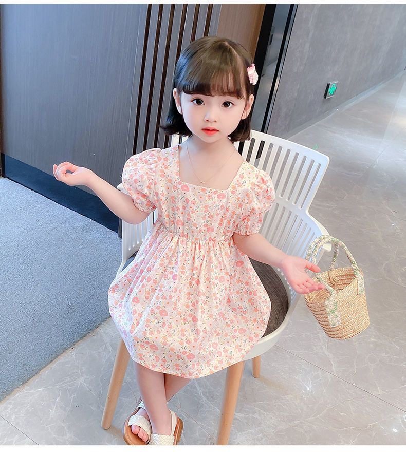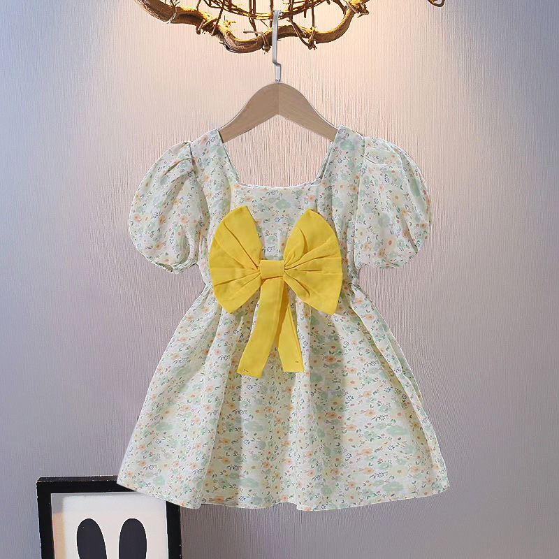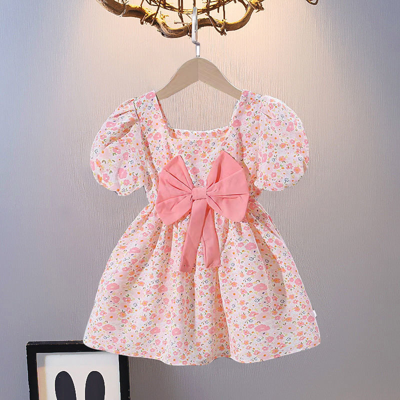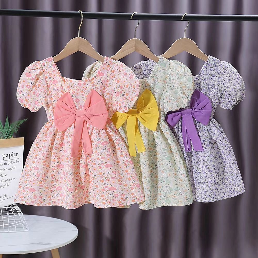 女童碎花连衣裙夏装2023新款儿童裙子蝴蝶结纯棉短袖裙韩版洋气潮