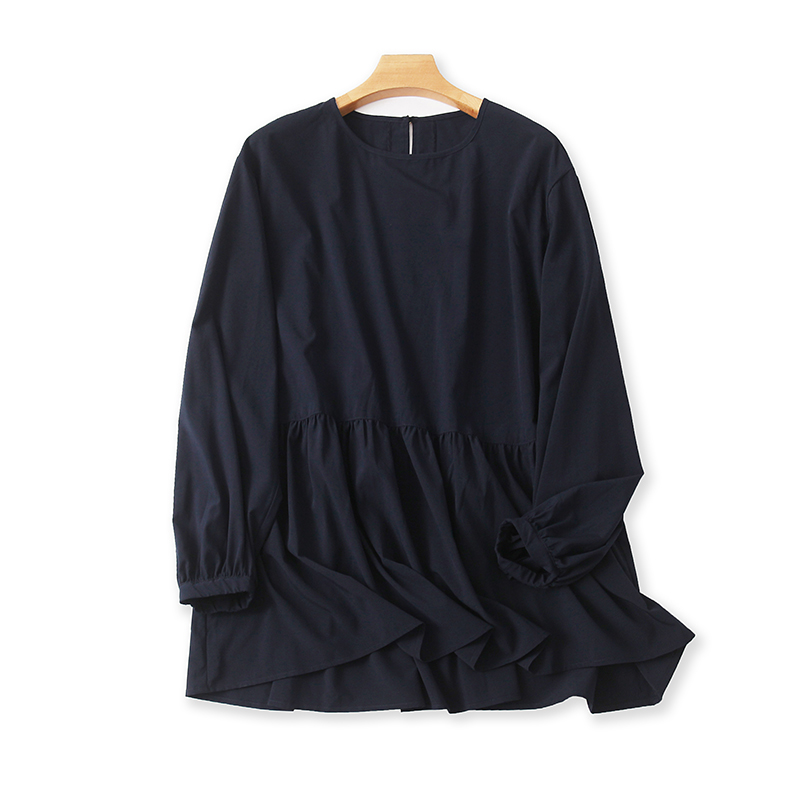 圆领中长款连衣裙 夏季新款荷叶边长袖打底宽松百搭女裙子 R/18-2