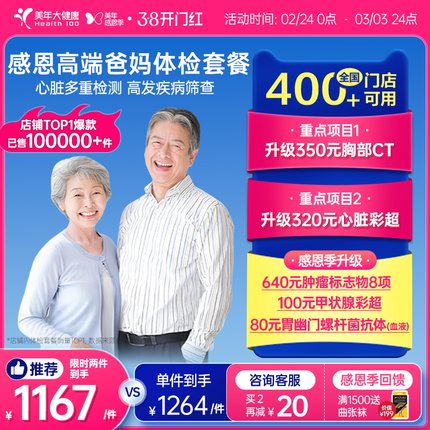 美年大健康中老年感恩高端体检套餐183TMMN00父母体检卡CT检测