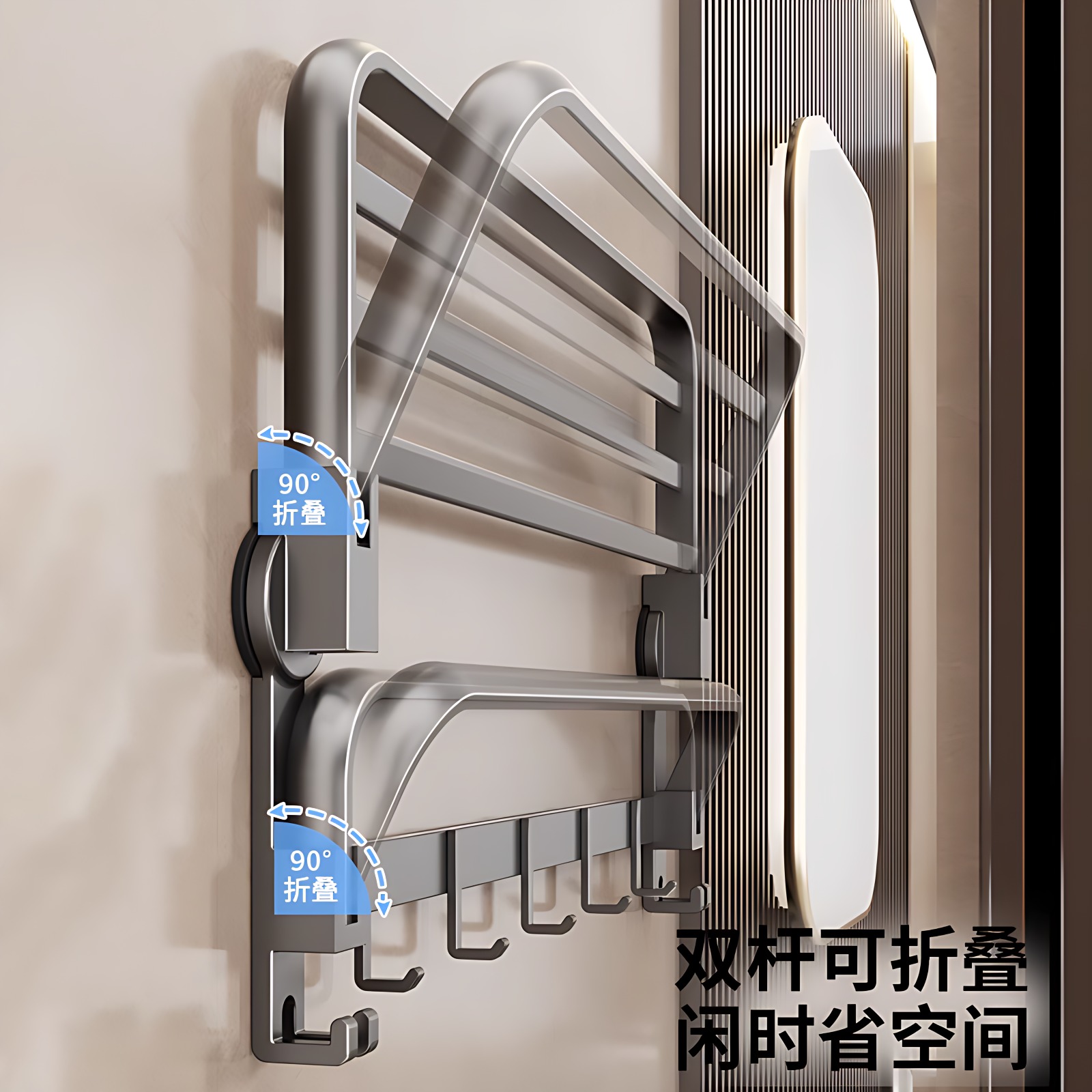 吸盘折叠浴巾架免打孔卫生间置物架壁挂式厕所挂件套装浴室毛巾架