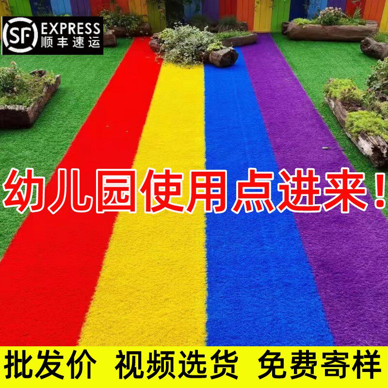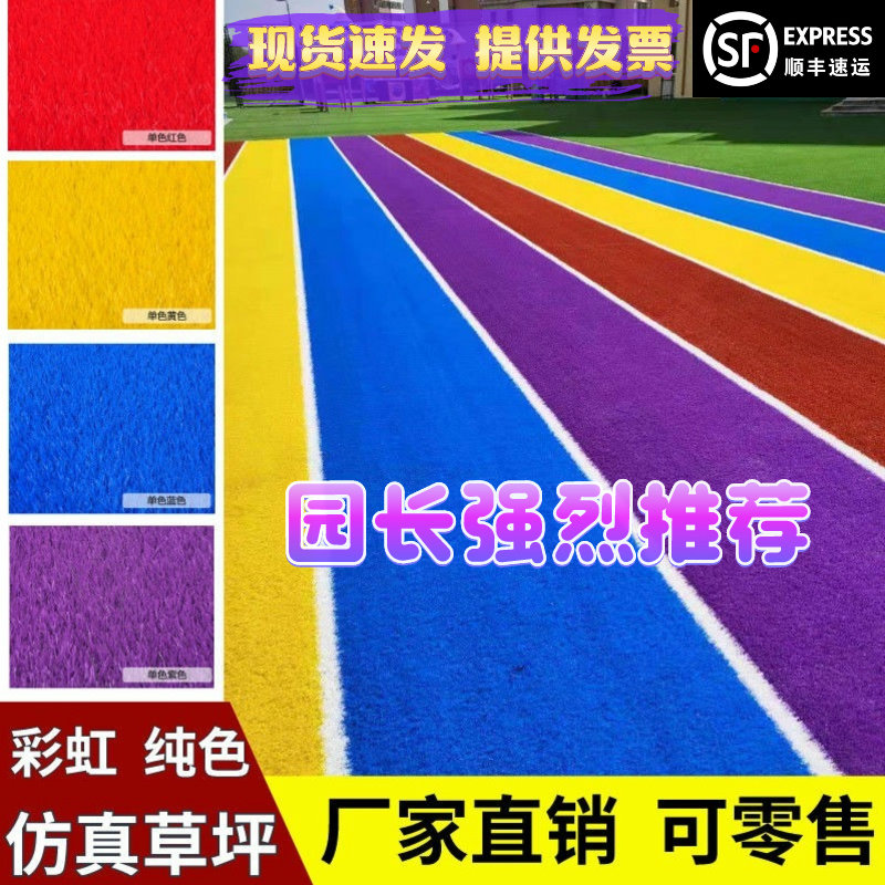 幼儿园户外人造仿真草坪彩虹跑道彩色红黄蓝紫塑料地毯隔热假草皮