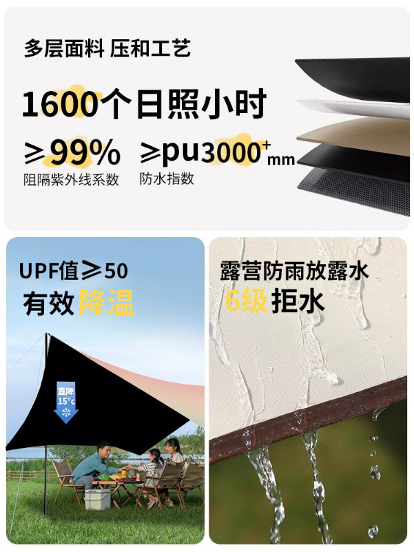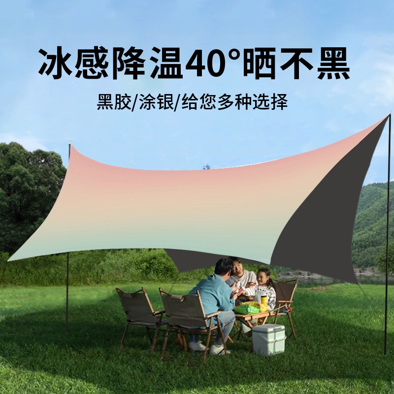 彩色天幕帐篷户外露营黑胶防晒防雨蝶形六角印花便携式八角遮阳棚