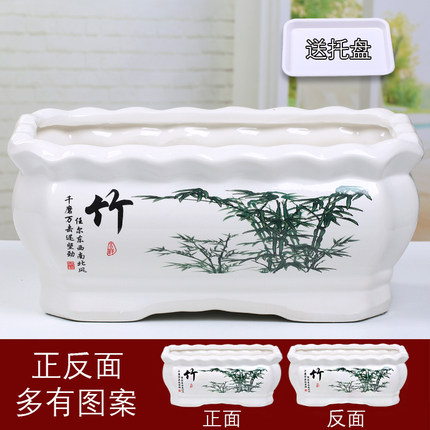 长方形花盆陶瓷批发带托盘特大号个性创意简约多肉绿植绿萝清仓