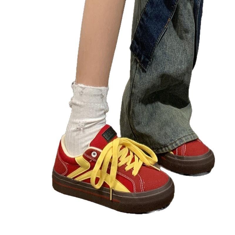 2025红色厚底时尚百搭板鞋女软底透气学生单鞋夏季新款休闲运动鞋