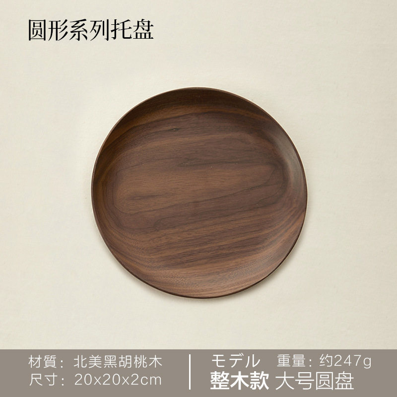 榉木托盘圆形茶盘喷漆防水实木盘整木碟子干果盘木质圆盘早餐盘