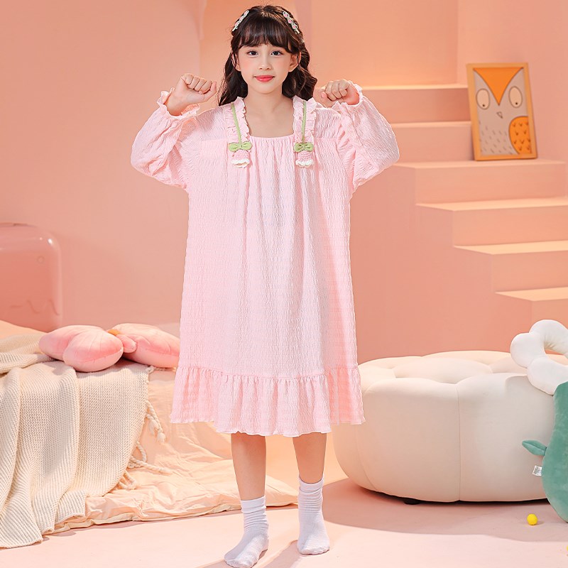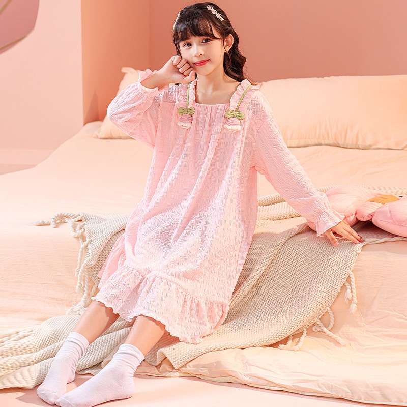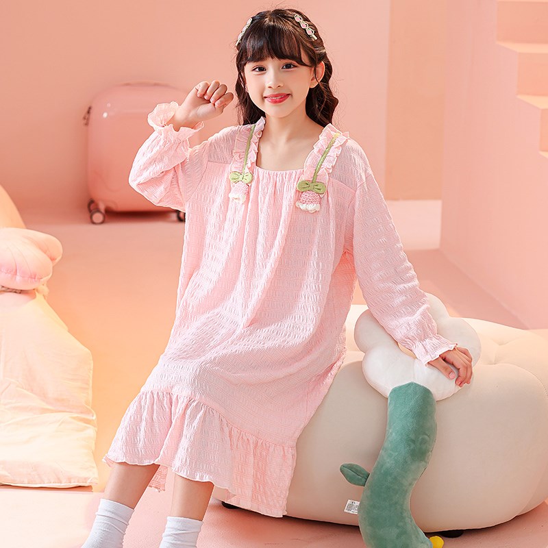儿童睡裙女童春秋季云朵棉长袖女孩初中生公主风甜美连衣裙家居服