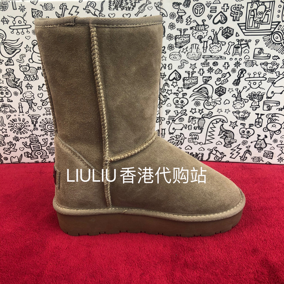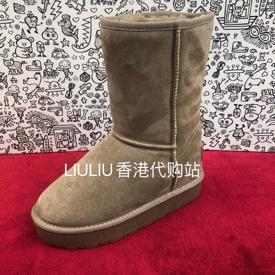 2025年雪地靴中筒牛皮加厚加绒保暖内增高9cm防滑卡其色女真皮靴