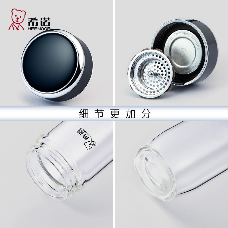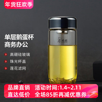希诺单双层玻璃杯鹅蛋高档男女大容量商务办公车载便携带滤网茶杯