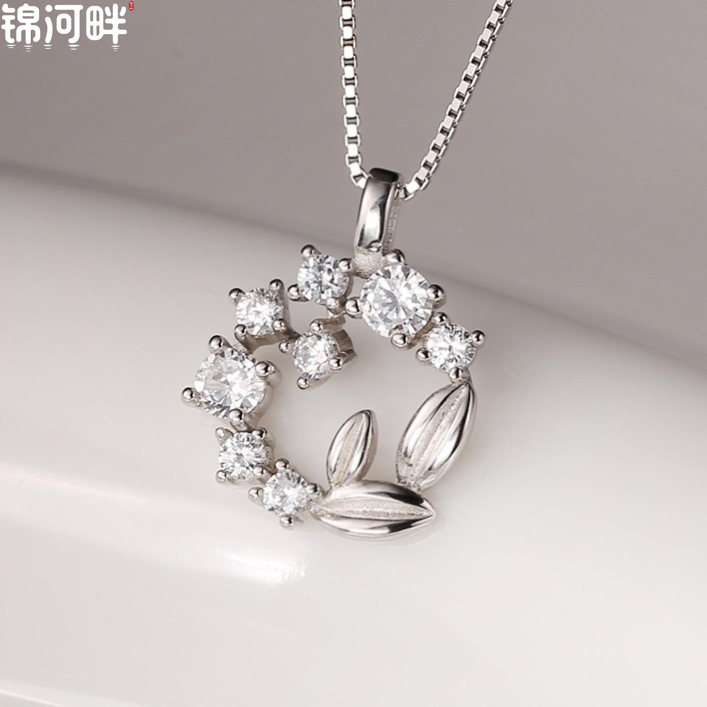 锦河畔 s925纯银花环项链女韩国简约小清新甜美仙女气质镶钻锁骨