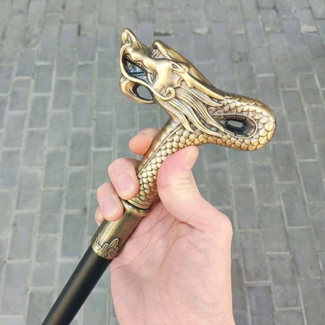 老人防身拐杖全金属龙头手杖文明棍高档绅士手杖户外登山防滑拐杖