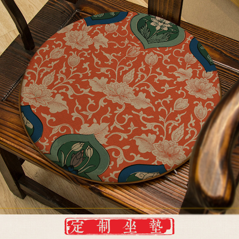 中式唐风圆形椅垫椅子餐椅鼓凳坐垫家具圈椅藤椅茶椅棉麻印花垫子