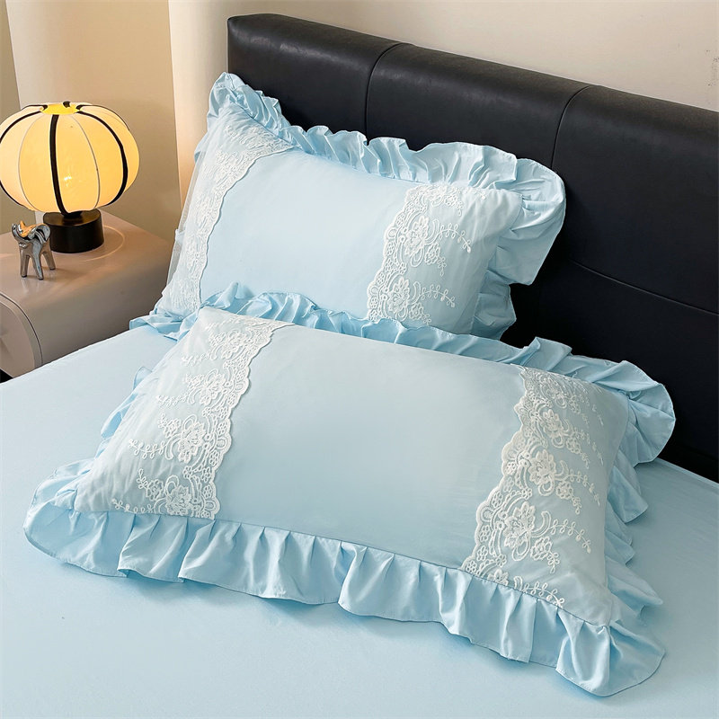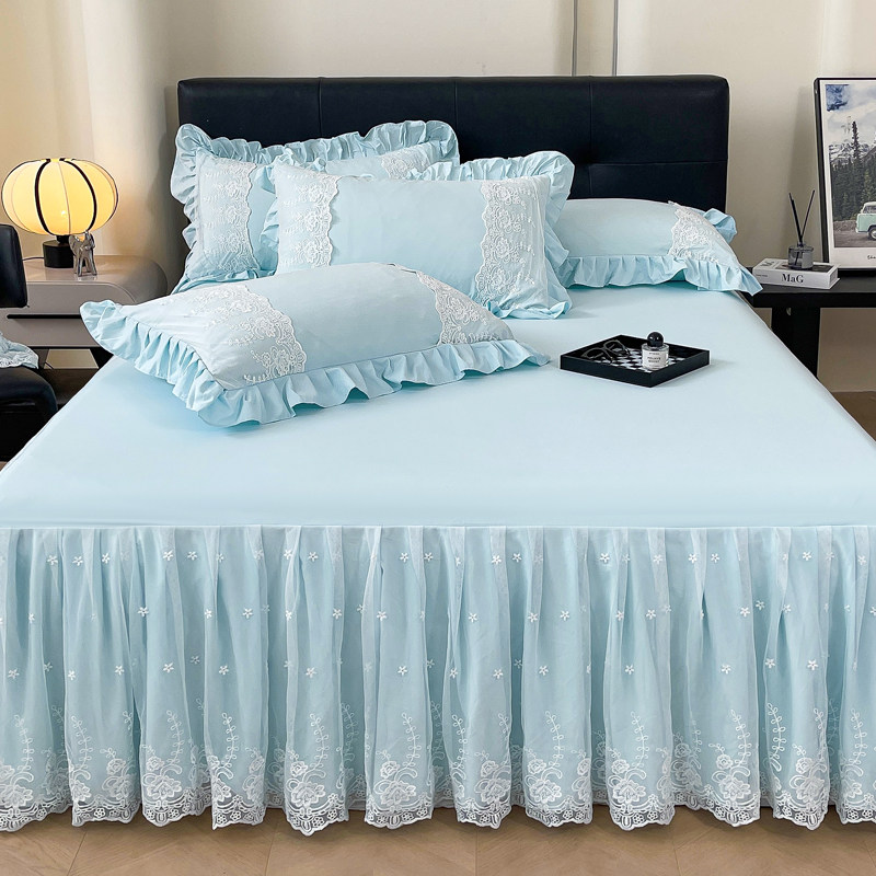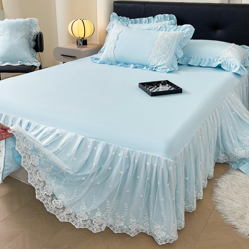 床裙三件套A类韩式花边床套床单纯色水洗棉床罩单件1.5m床盖1.8m2