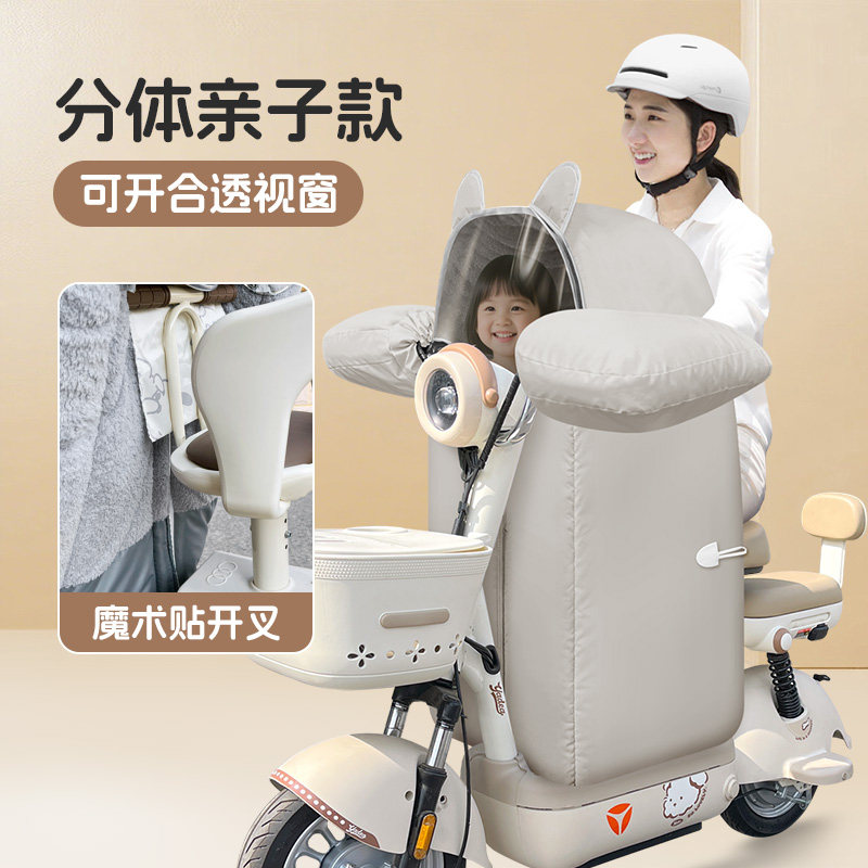 适用雅迪爱玛台铃新日绿源等电动车儿童前座椅亲子冬季挡风被防水
