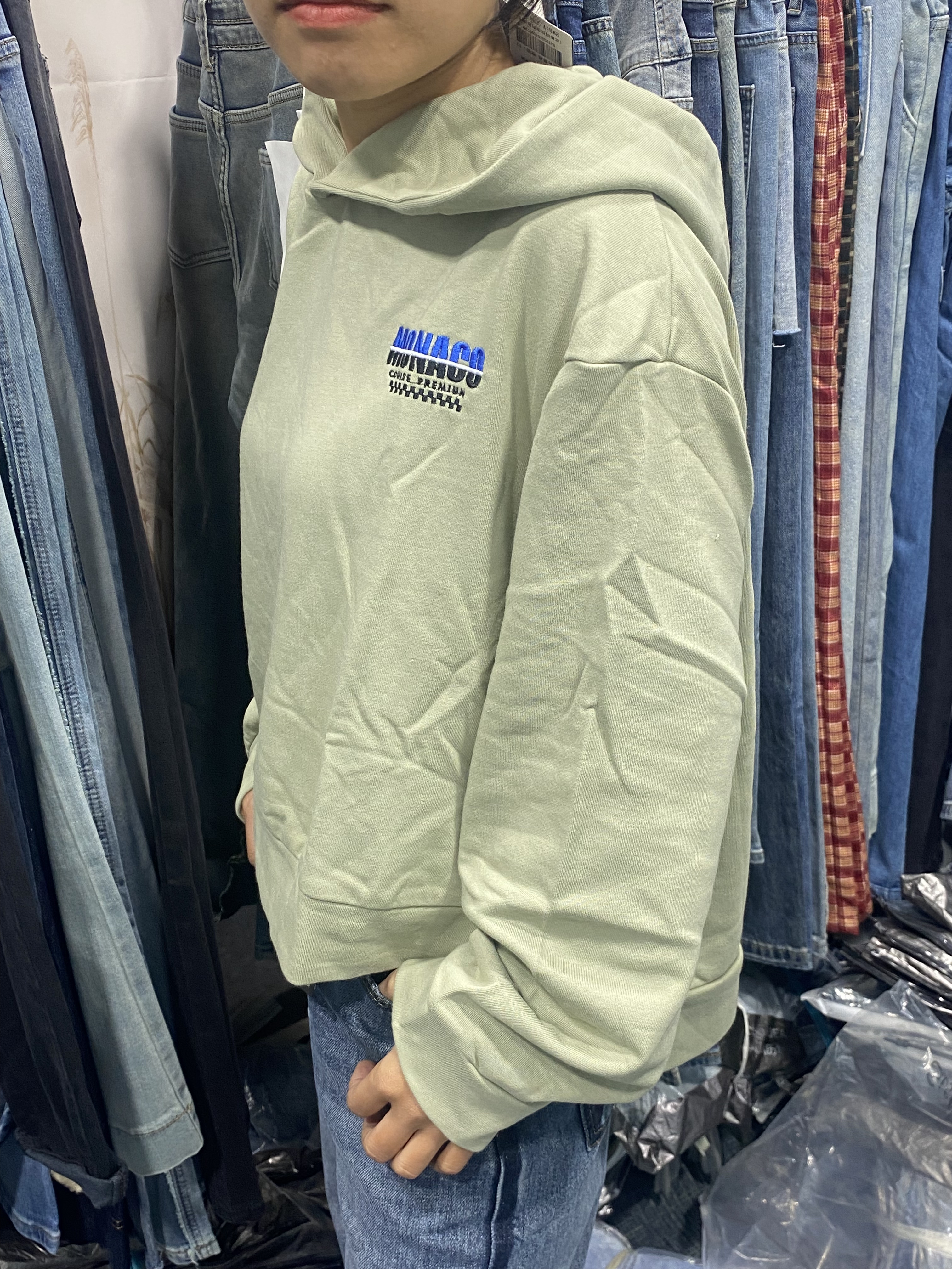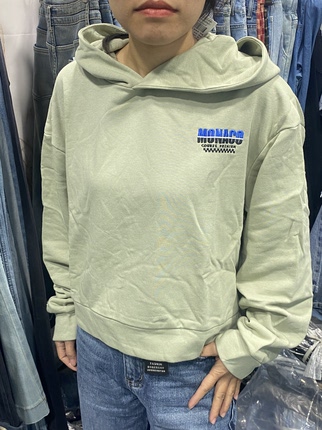 军绿色短款连帽卫衣秋季新款宽松运动休闲外套女