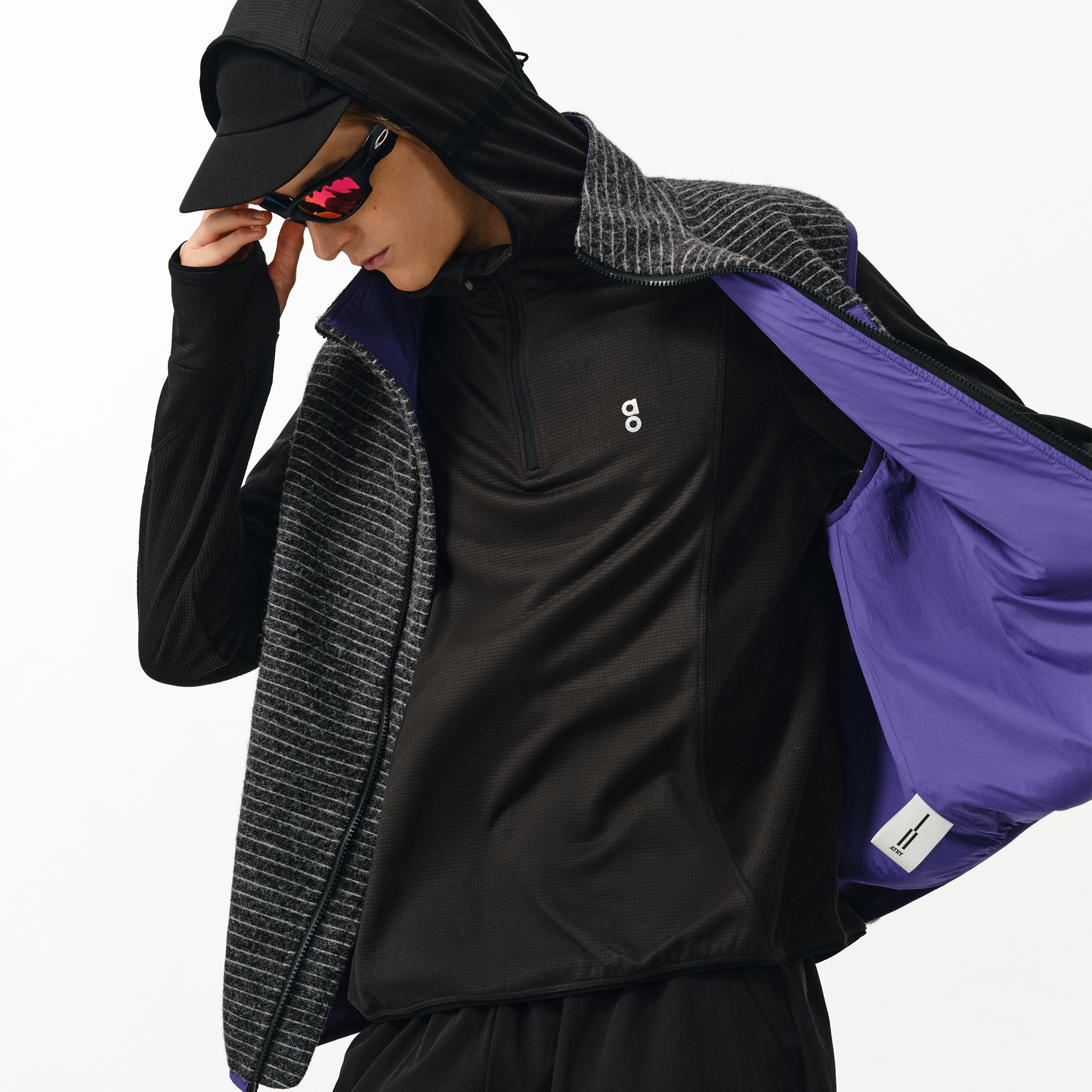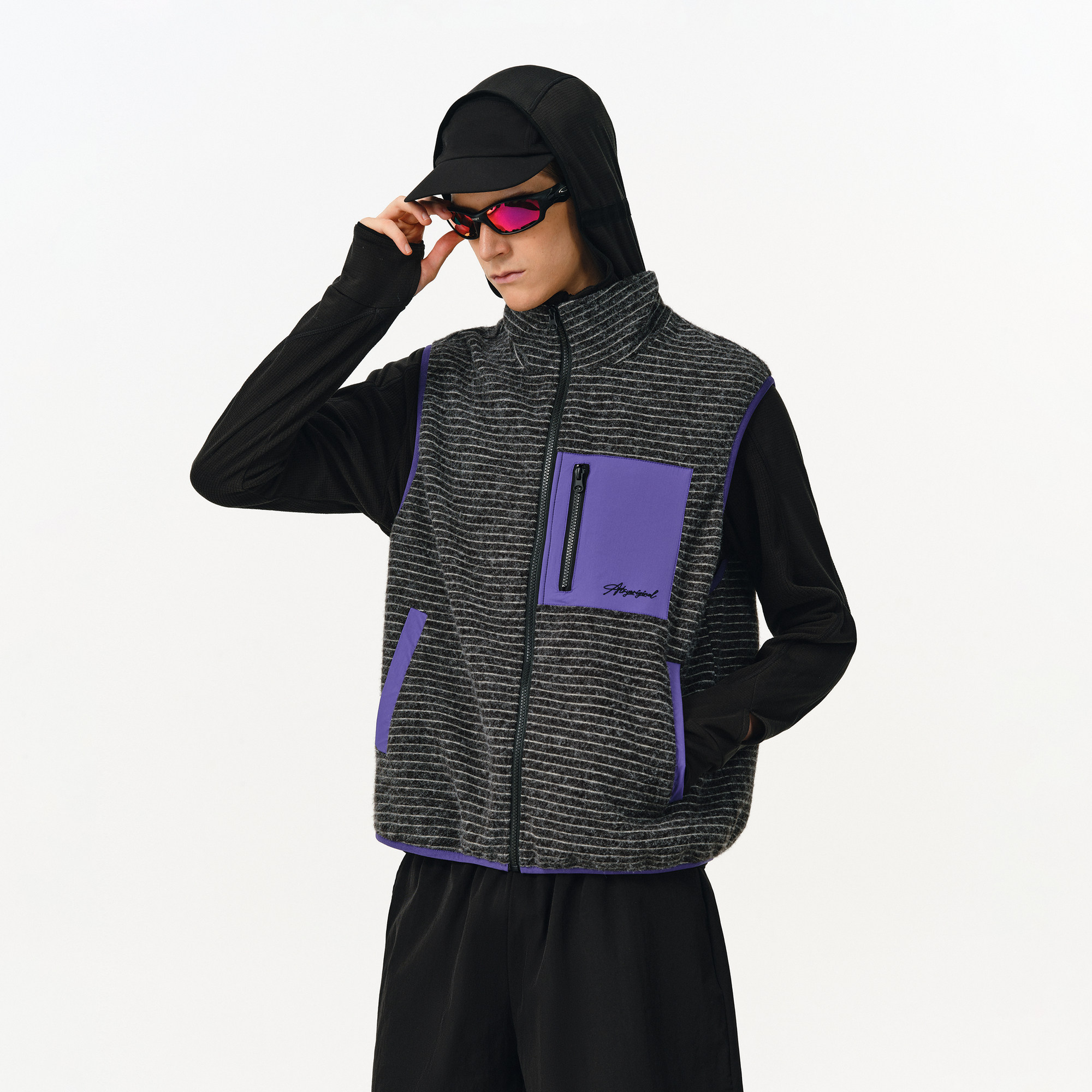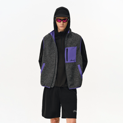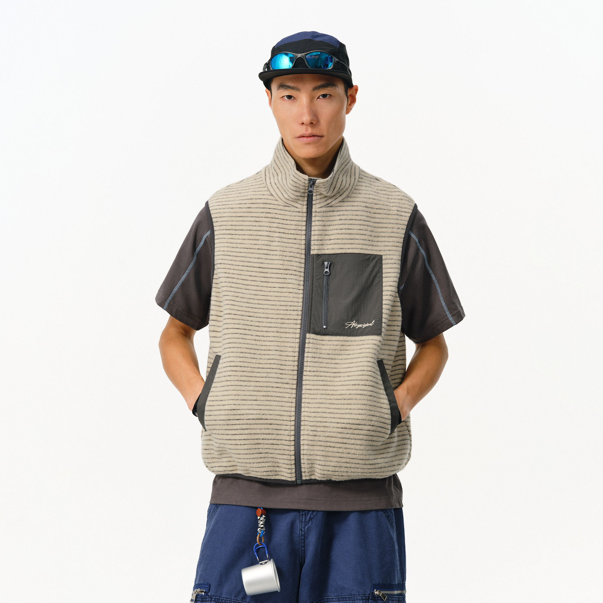 ATRY复古条纹撞色立领工装马甲男