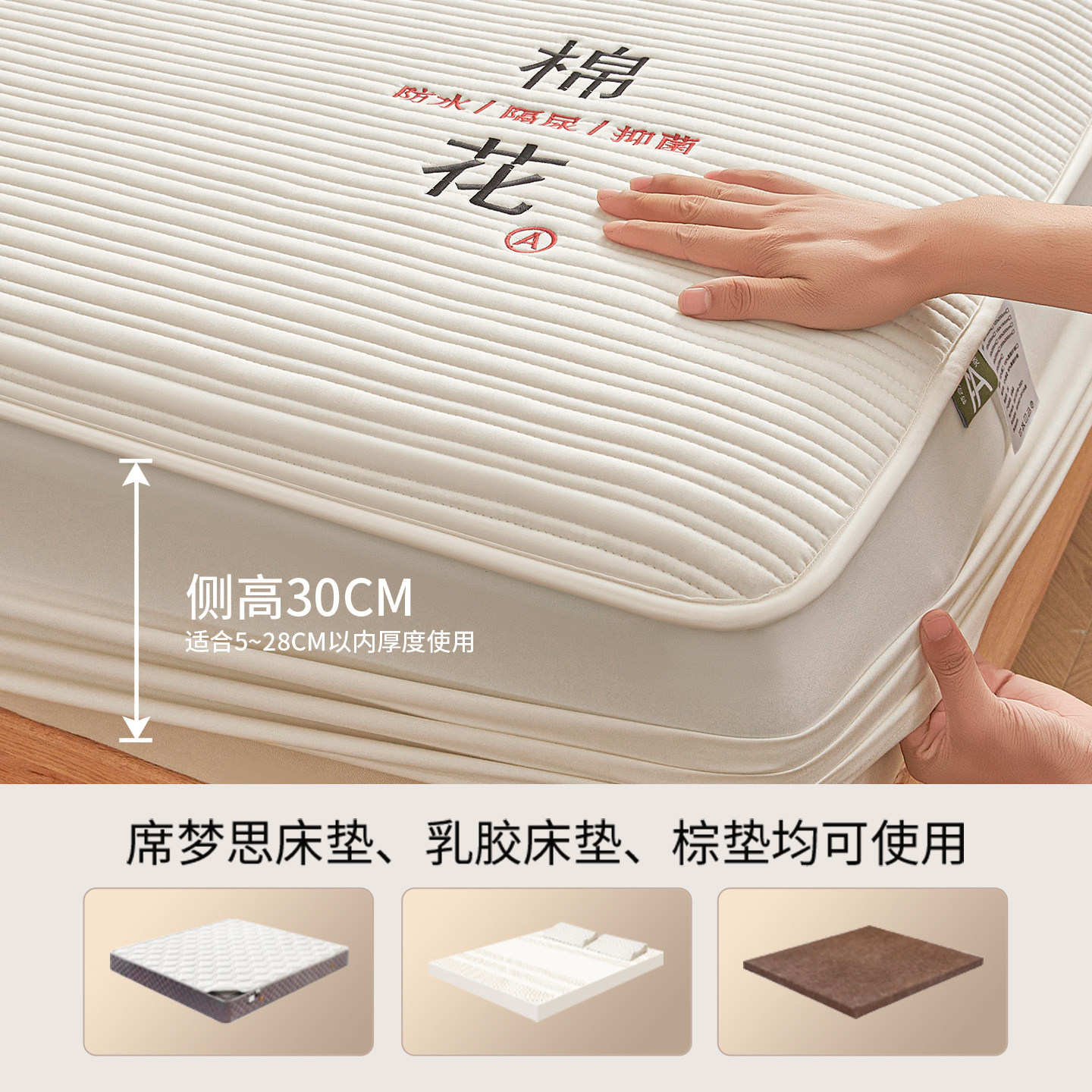 红豆防水夹棉床笠床罩床垫保护套